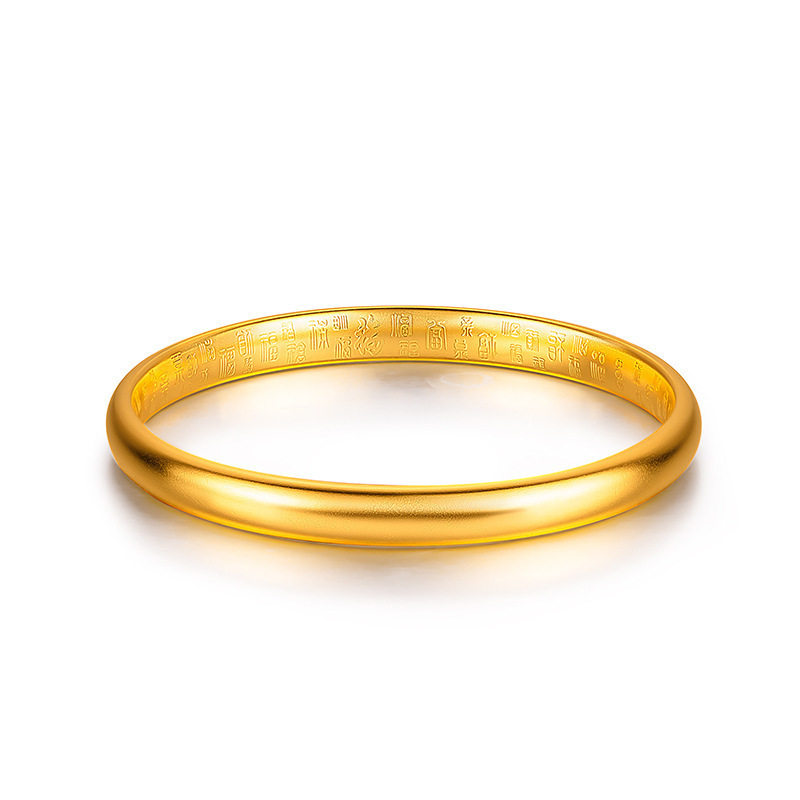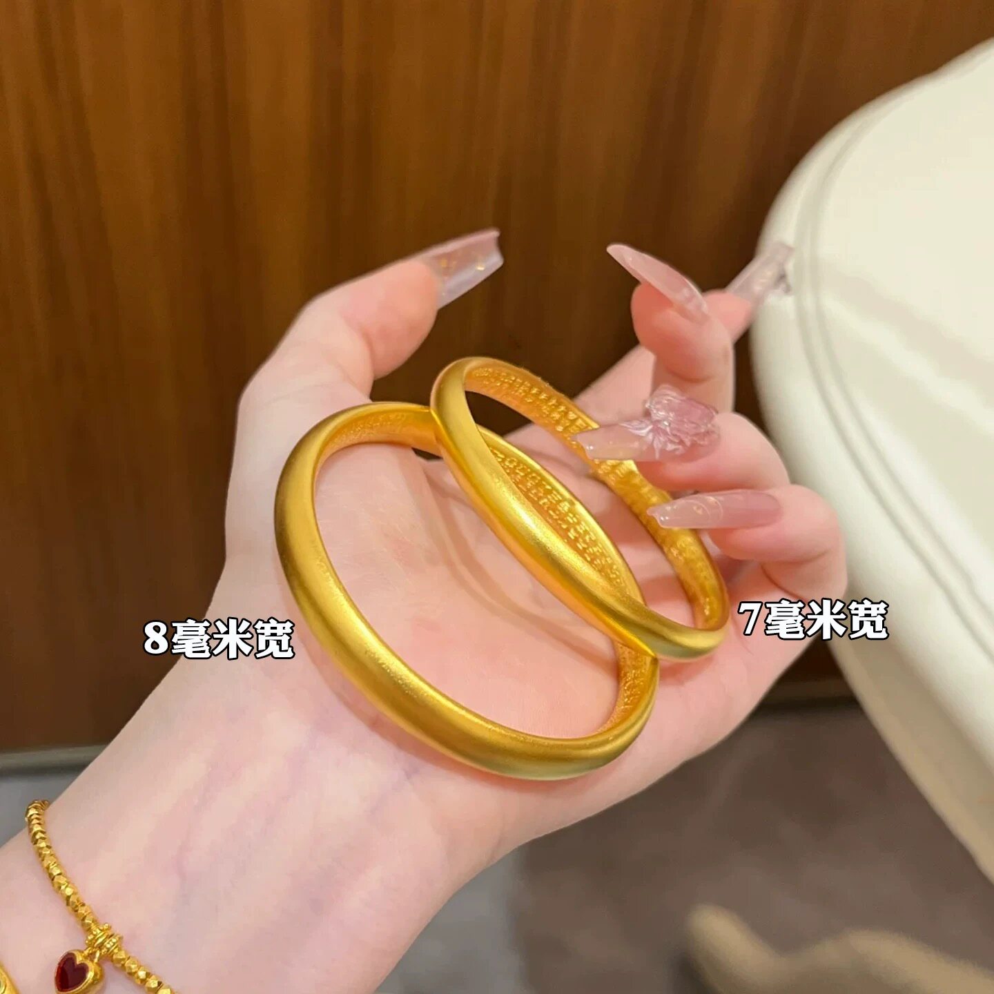 泥鳅背黄金色手镯轮胎实心粗宽沙金手镯女磨砂心经手环金店同款