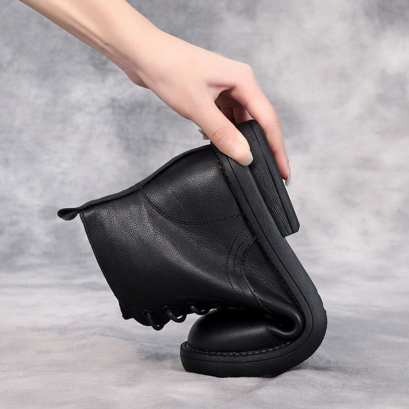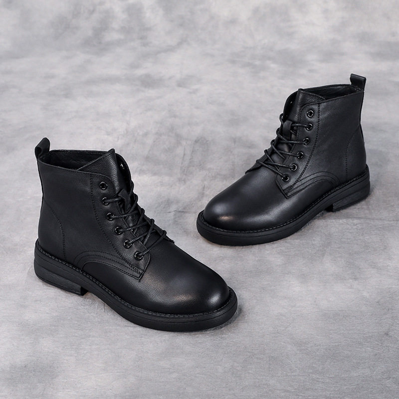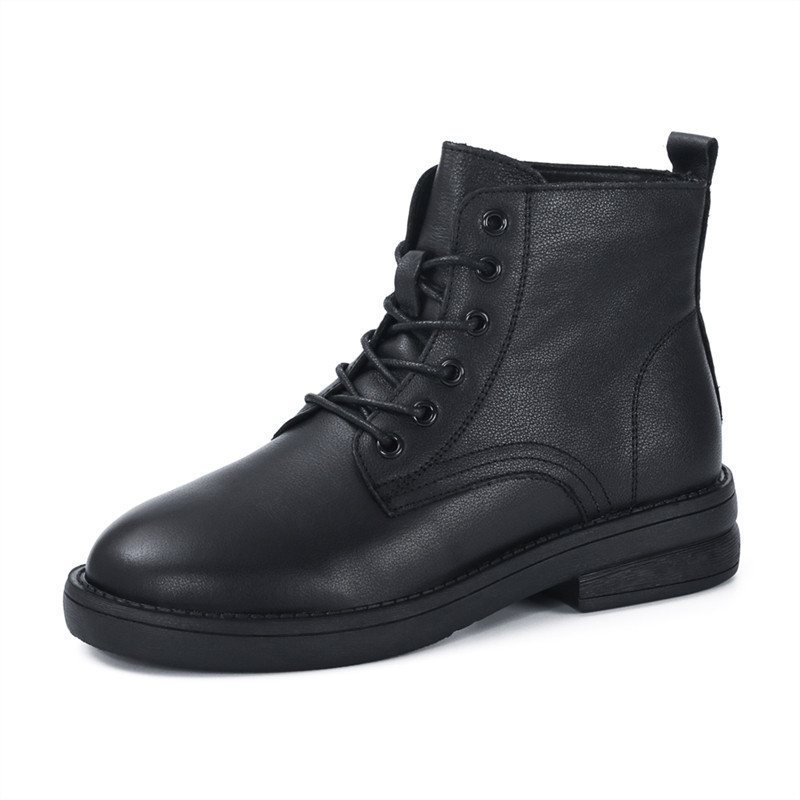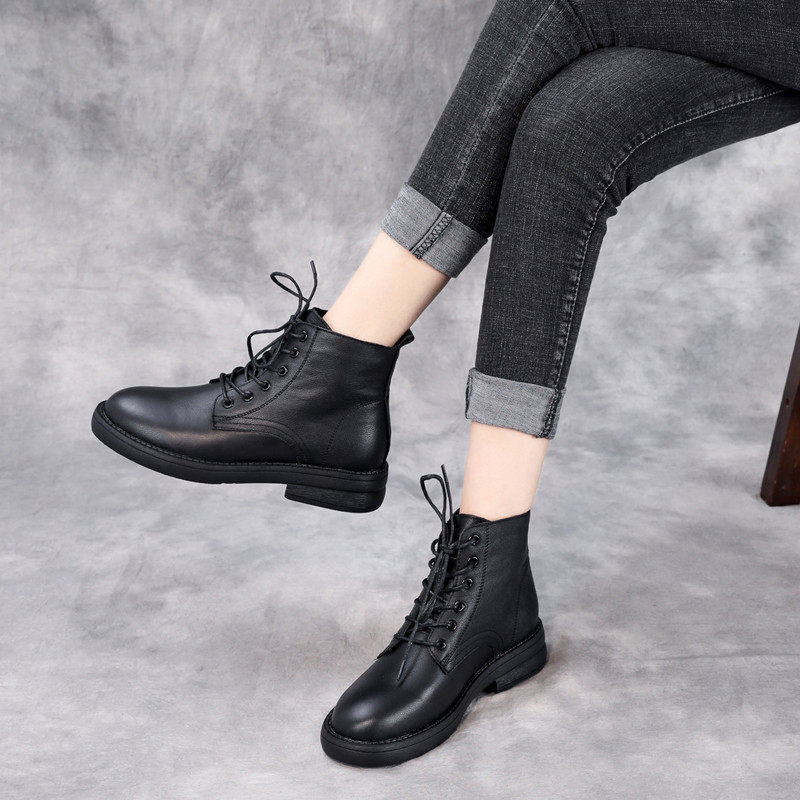 真皮小短靴女2025新款秋冬季平底马丁靴软底单靴牛皮黑色皮鞋加绒
