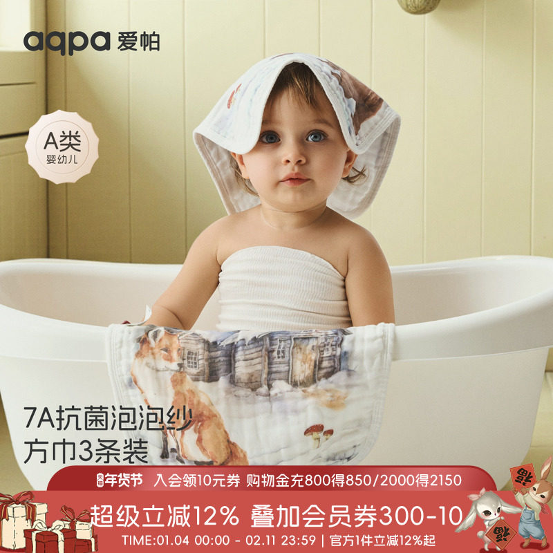 [动物之森]aqpa婴儿小方巾三条装口水巾新生宝宝洗脸巾纱布洗澡萌