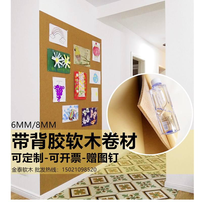 8MM带背胶软木板软木墙板背景墙留言板幼儿园护墙板软木照片墙