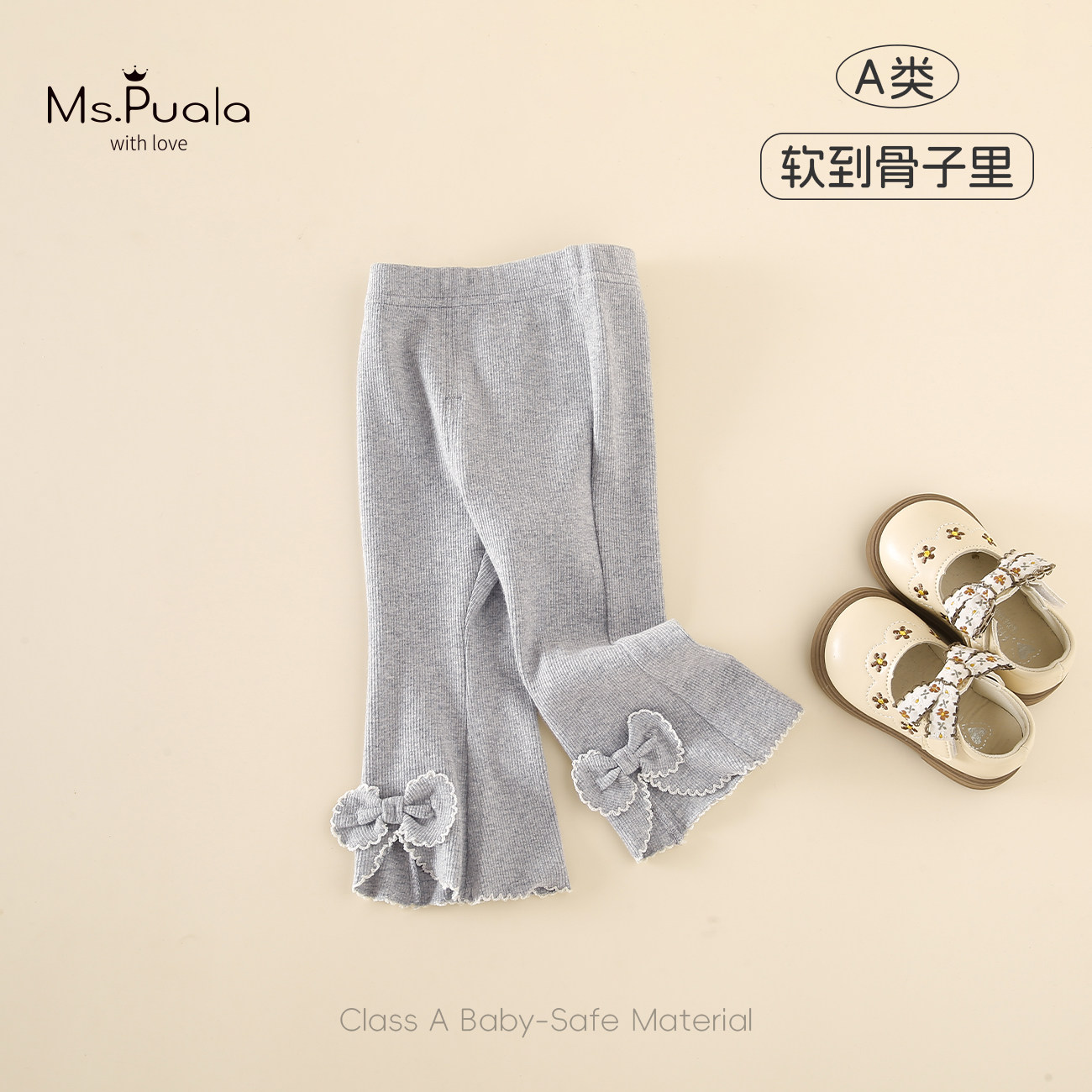 Ms.Puala女童纯棉打底裤春款儿童喇叭裤女宝宝蝴蝶结休闲长裤