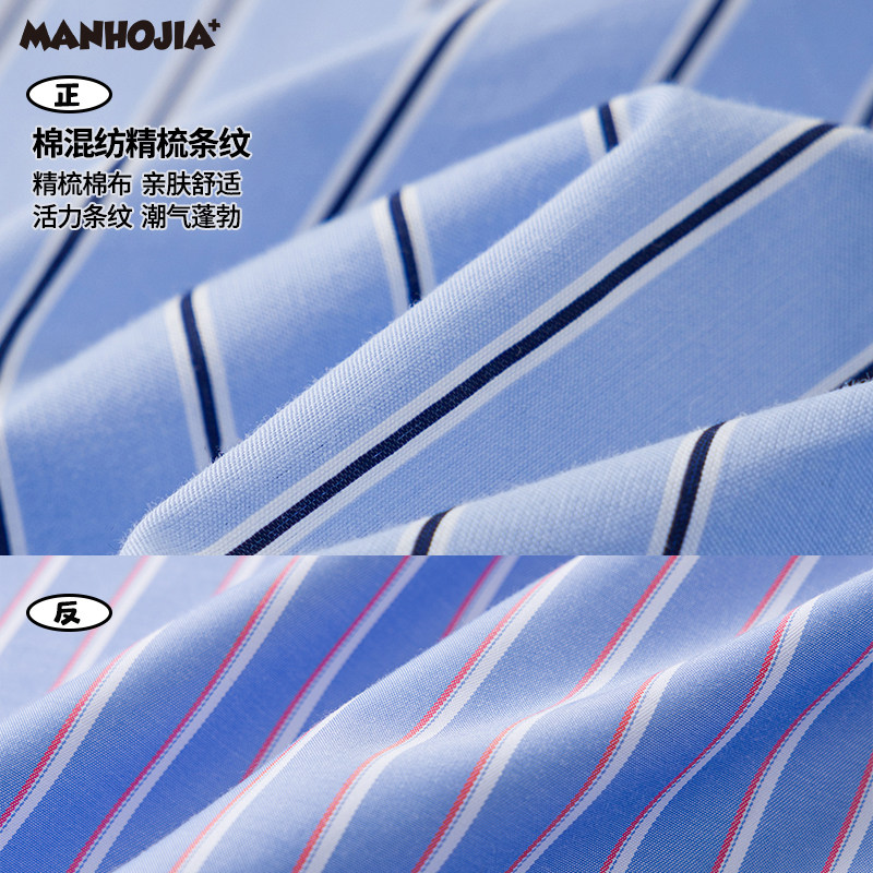 新年限定红蓝条纹撞条纹学院拼接衬衫