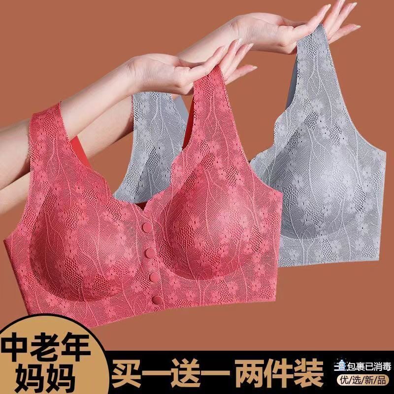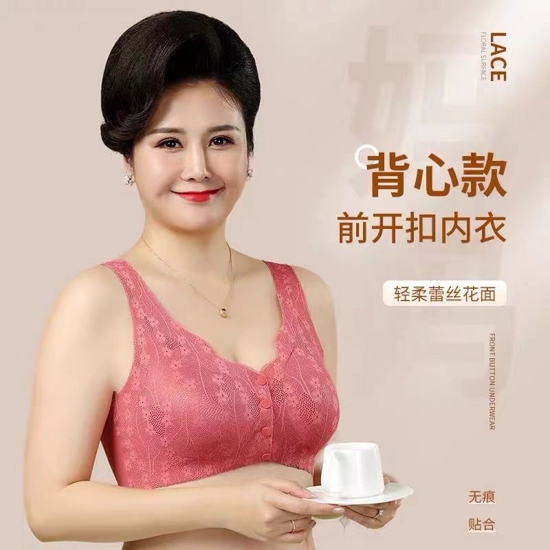 妈妈内衣舒适中老年人内衣背心式前扣文胸透气大码无钢圈母乳文胸