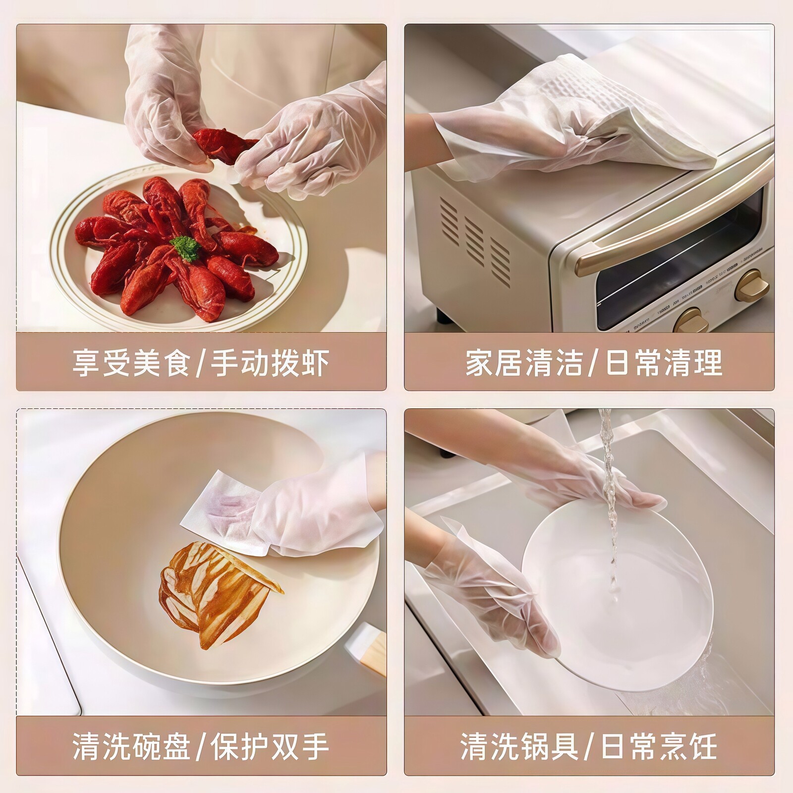 一次性手套pe食品级专用加厚耐用家用抽取式透明吃小龙虾餐饮盒装