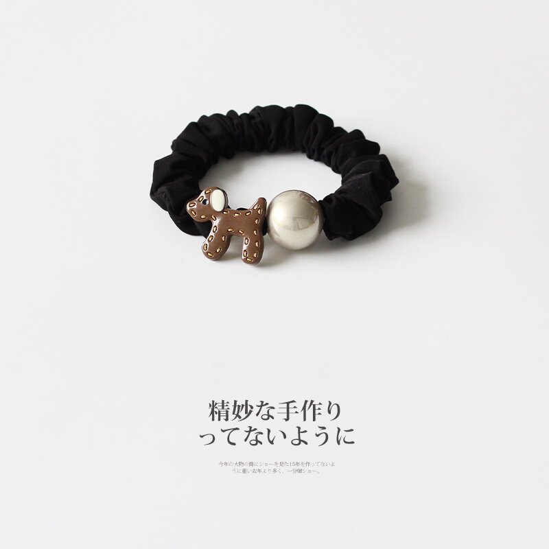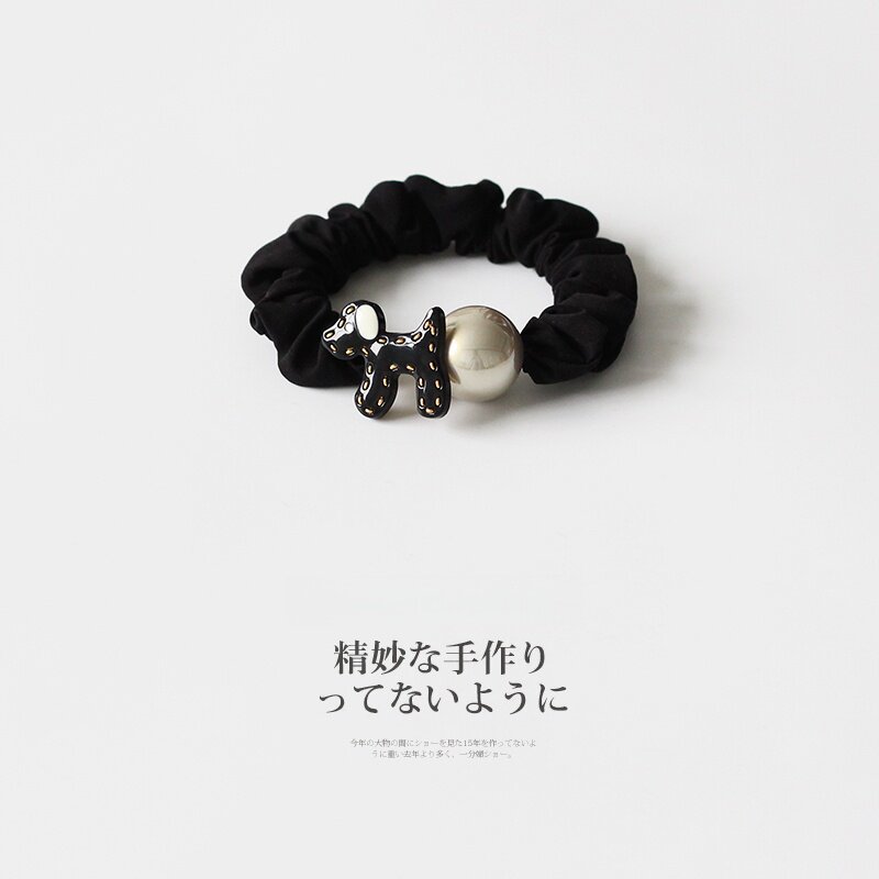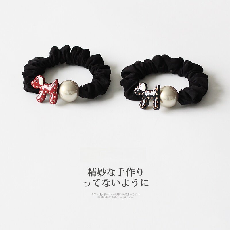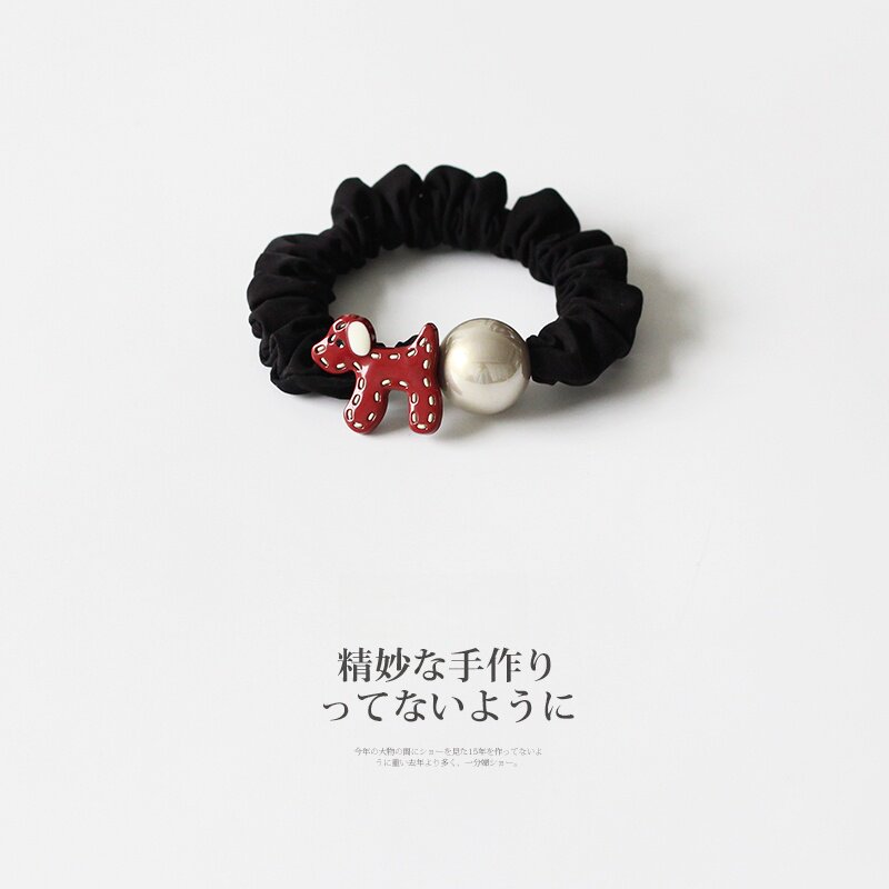 卡通小狗圆球发绳女2026新款简约扎马尾高弹力橡皮筋红色黑色高级