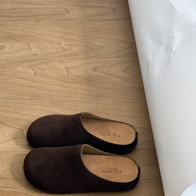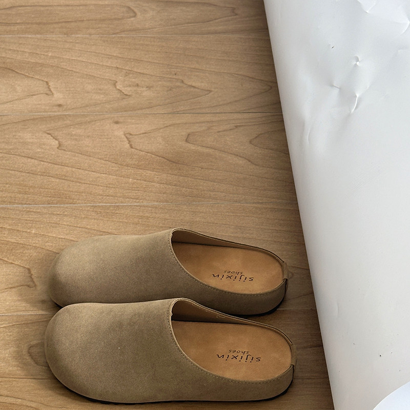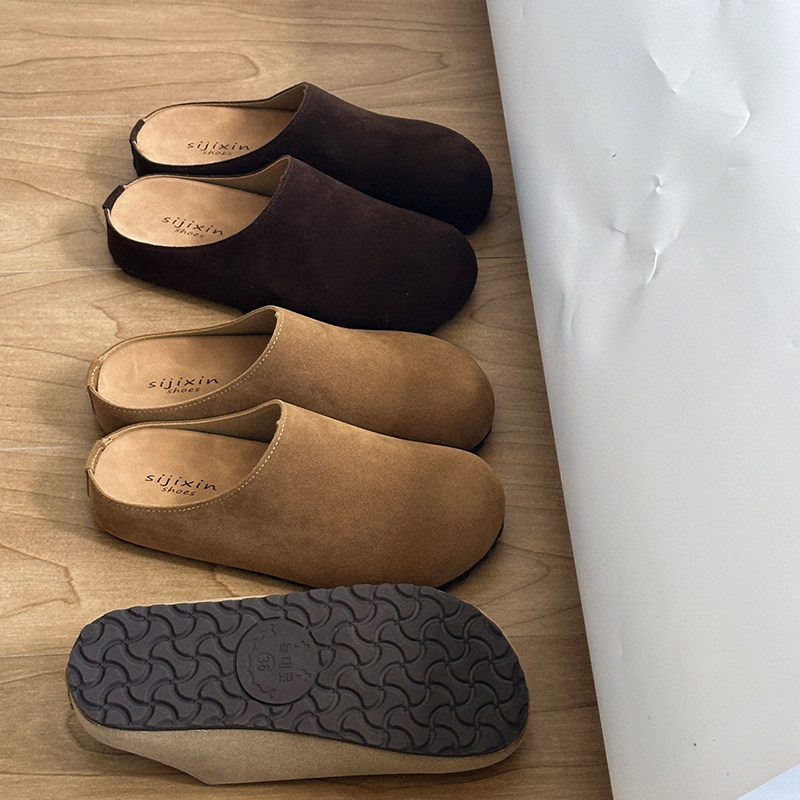 包头勃肯鞋女外穿软底日系森系厚底一脚蹬懒人百搭半拖鞋棕色舒适
