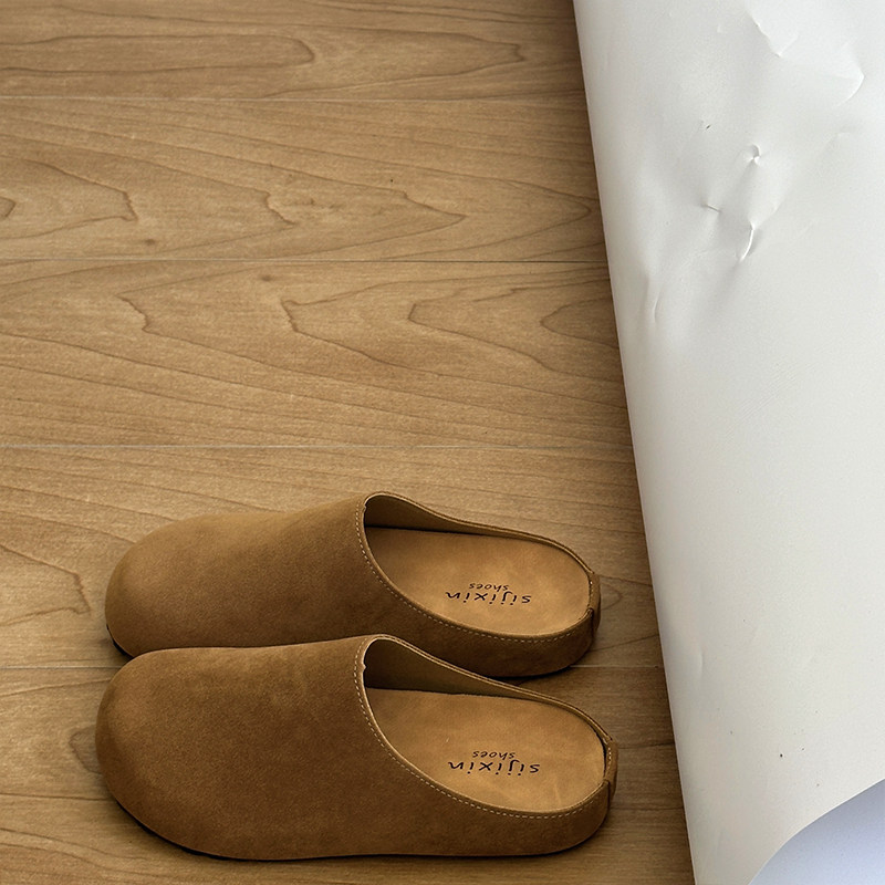 真皮包头拖春季2026年新款勃肯鞋圆头拖鞋平底外穿休闲半拖懒人鞋