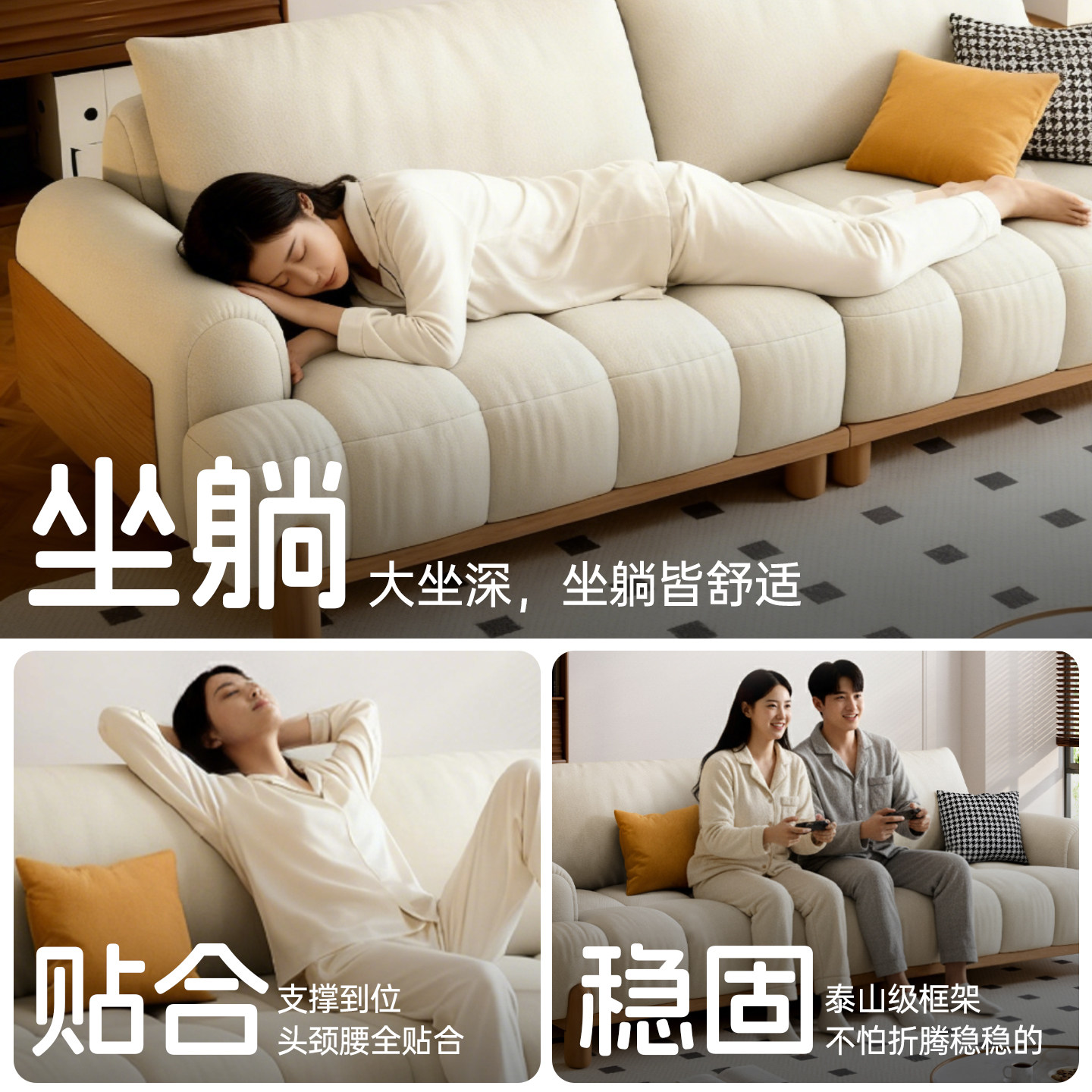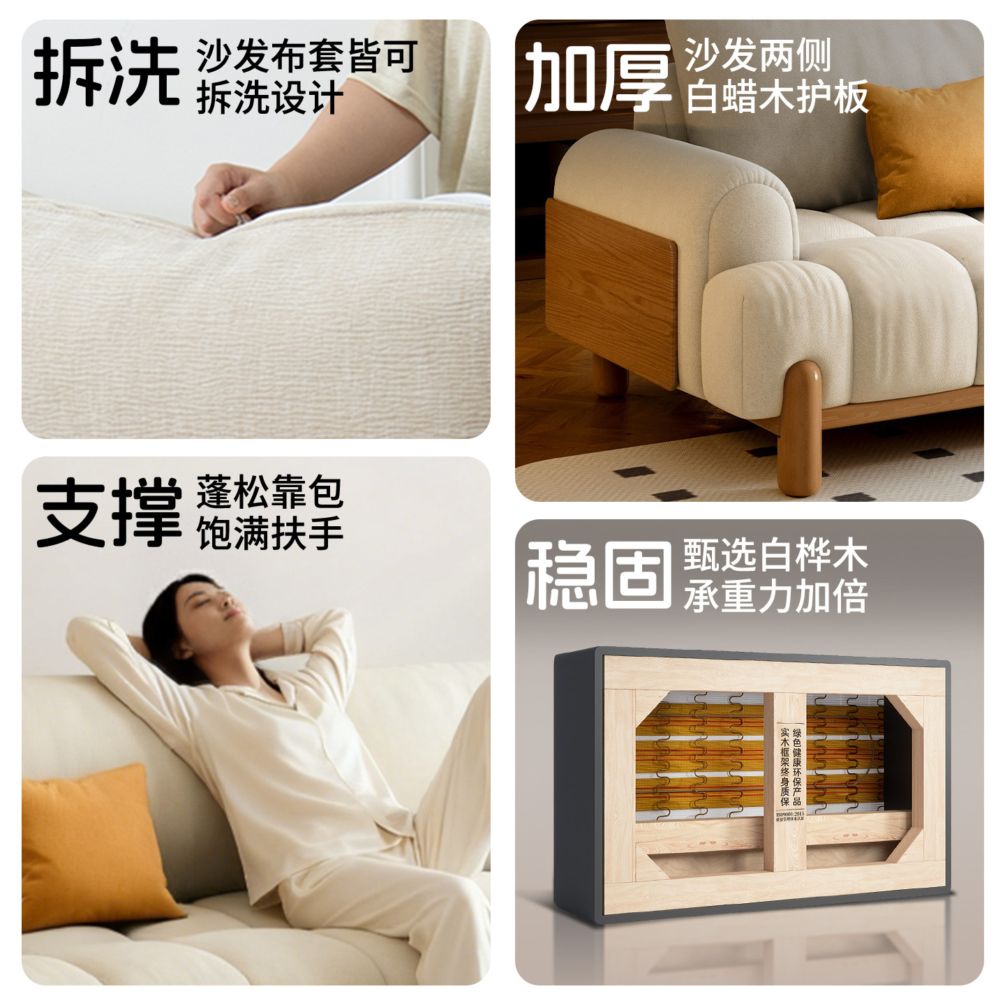 原木风泡芙布艺沙发客厅小户型简约可拆洗棉花糖沙发直排猫爪布