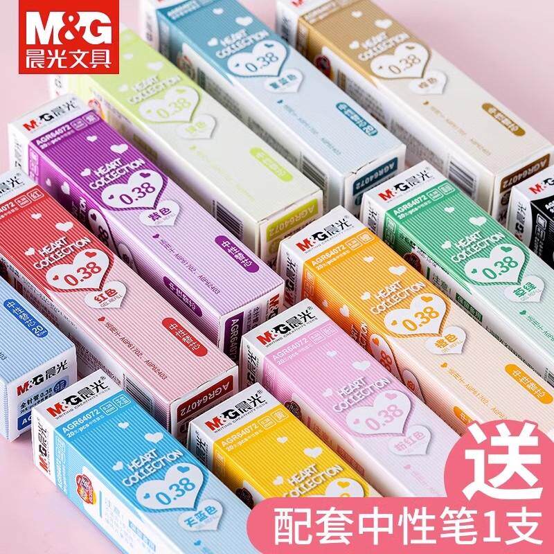 晨光彩色中性笔笔芯新流行混合装0.38mm多色混装水笔芯做笔记专用