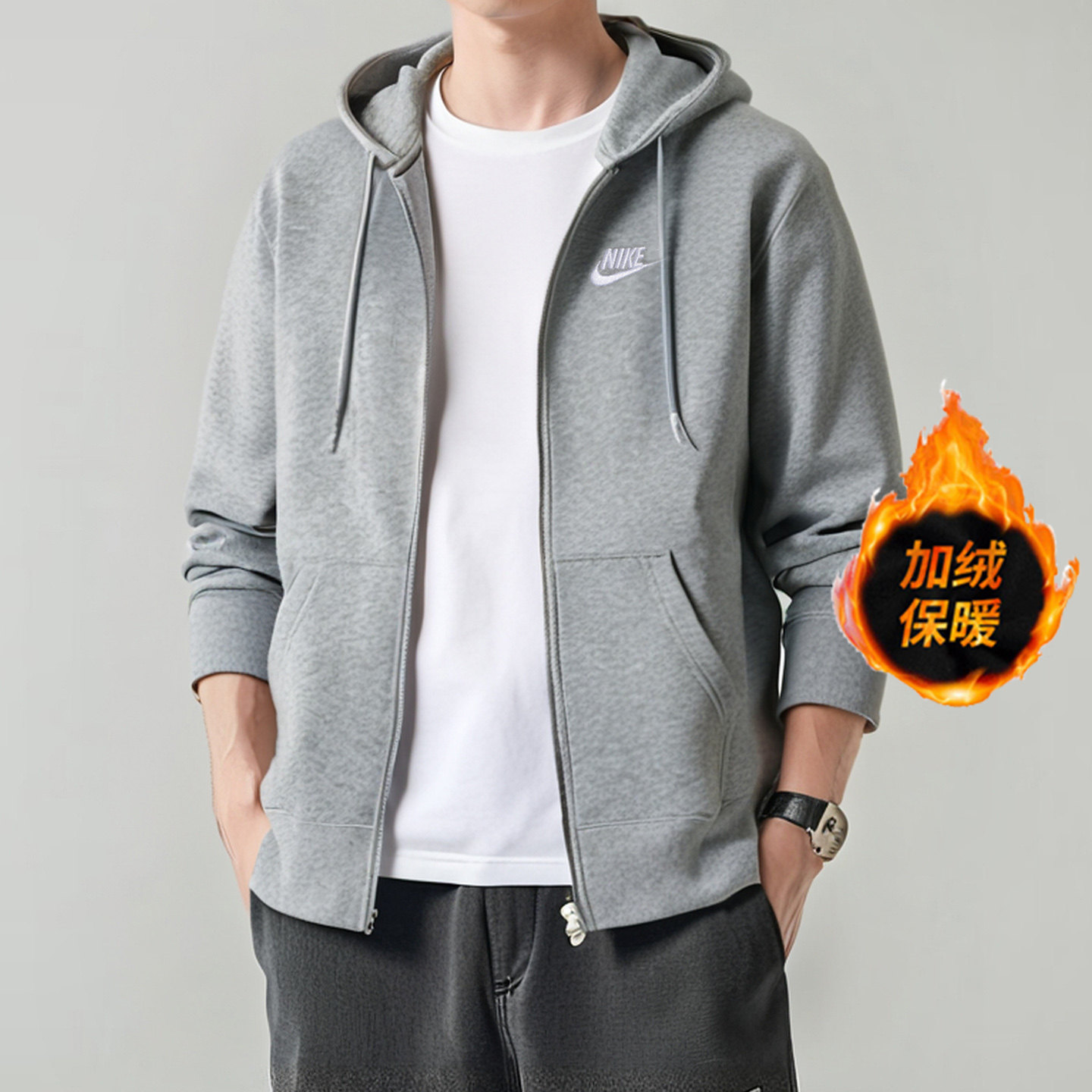 NIKE耐克加绒运动套装男秋季新款连帽外套夹克跑步裤子长裤两件套
