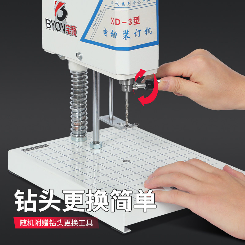 宝预XD-3财务凭证装订机纸张活页夹打孔机文件打洞器麻花钻打孔器古籍族谱打洞机会计票据小型电动装订打孔机