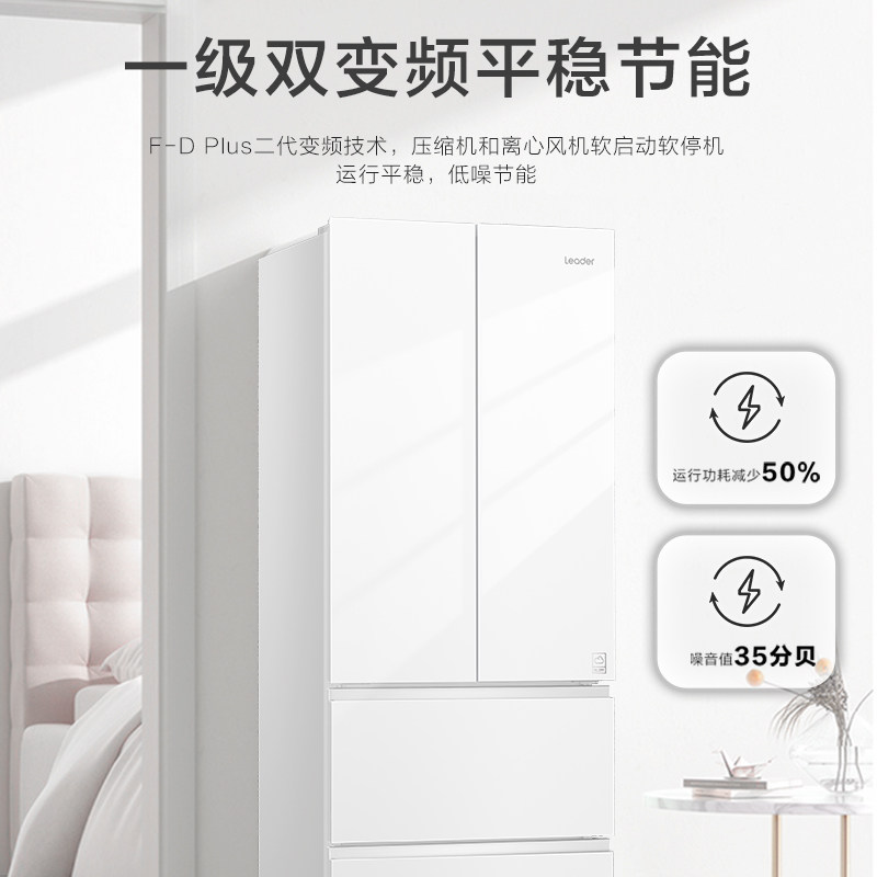 政府补贴海尔出品统帅345L彩晶法式四门多门一级小型家用冰箱官方