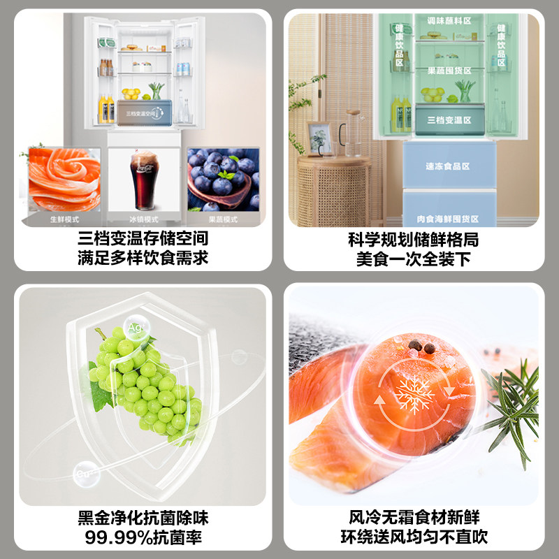 双系统|美的M60小机皇520超薄零嵌入式冰箱家用法式多门四门双开