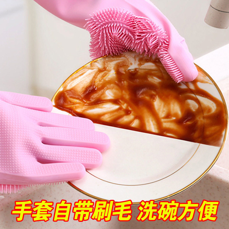 硅胶洗碗手套家务厨房耐用形食品级刷碗洗菜宠物洗澡防抓防水清洁