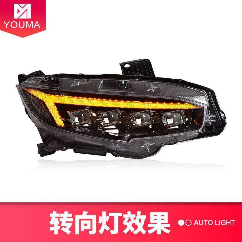 适用于本田十代思域大灯总成改装LED透镜大灯动态日行灯流水转向
