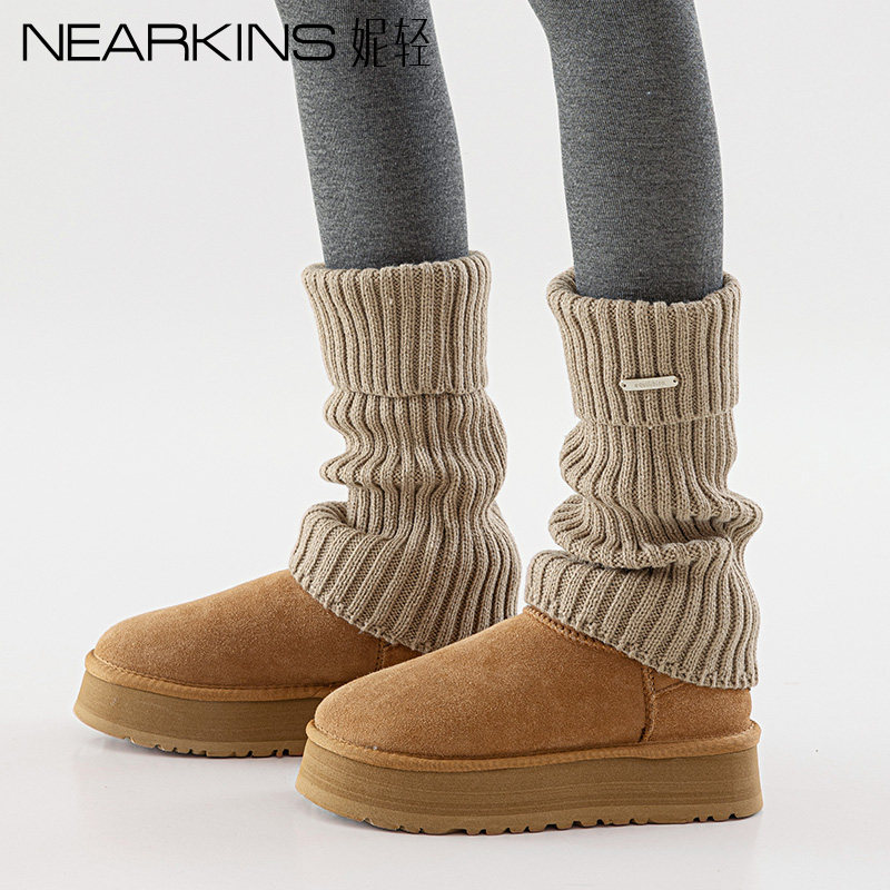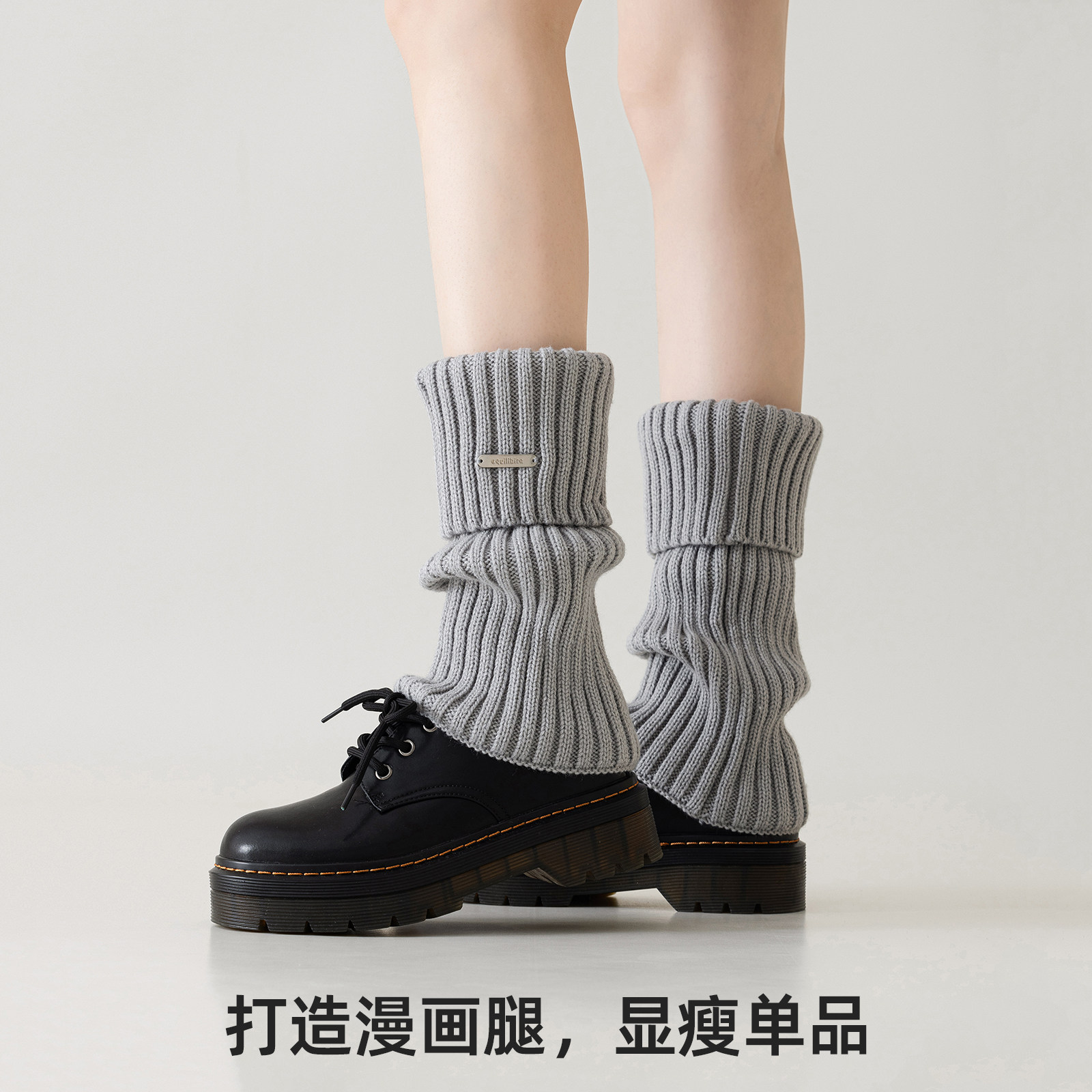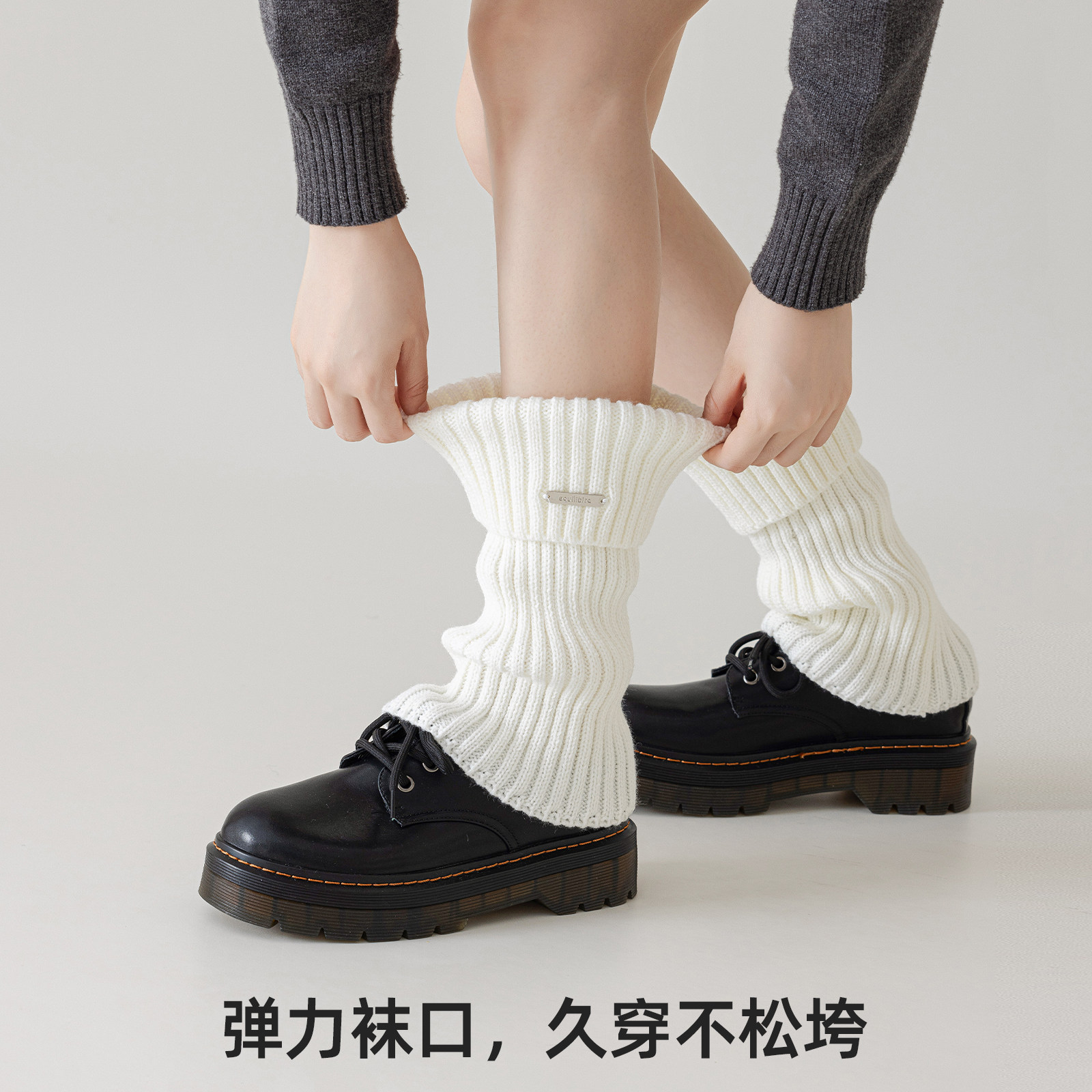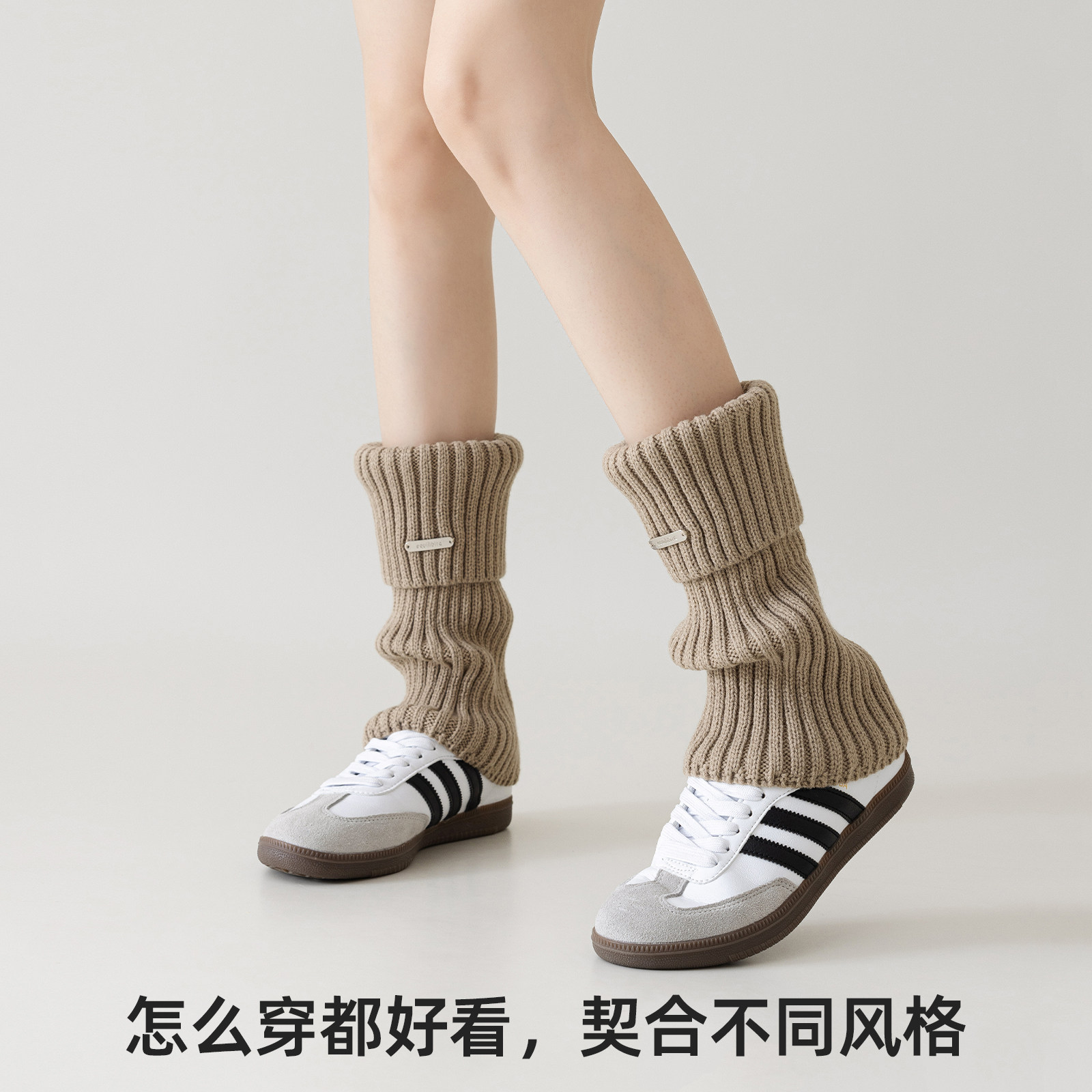 袜套女堆堆袜秋冬款y2k腿套针织卡其色中筒长袜套配鲨鱼裤雪地靴