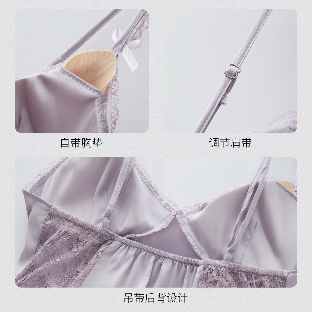 冰丝睡裙女款春夏性感纯欲风吊带睡衣带胸垫睡袍秋季丝绸女士浴袍