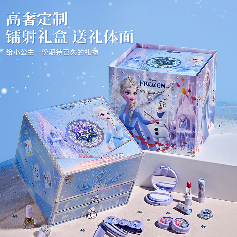 迪士尼授权艾莎儿童化妆品彩妆套装女孩子生日礼物无毒可水洗口红