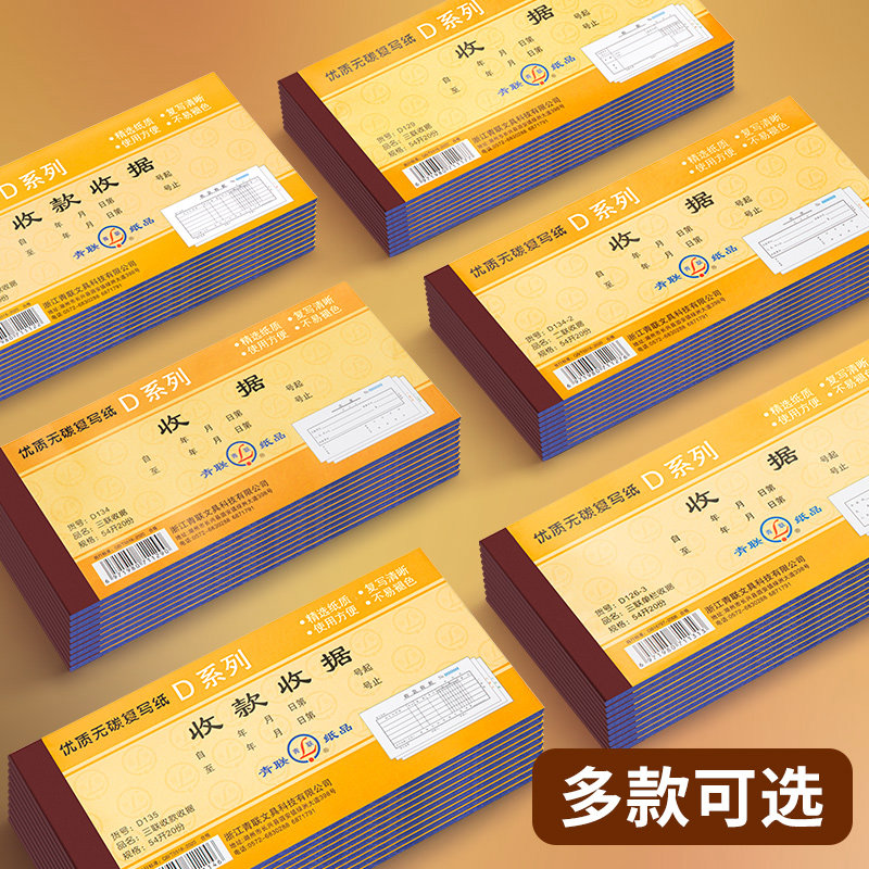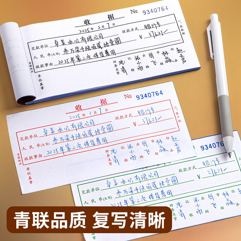 青联收据收款收据单栏多栏二联三联23联连两联收据本单簿收款本现金收剧单据锯无碳复写餐饮财会财务用品定制