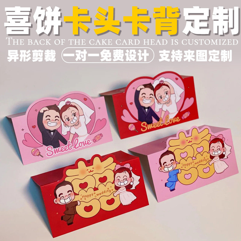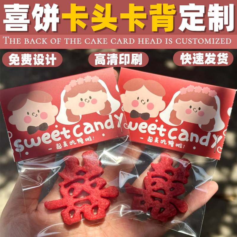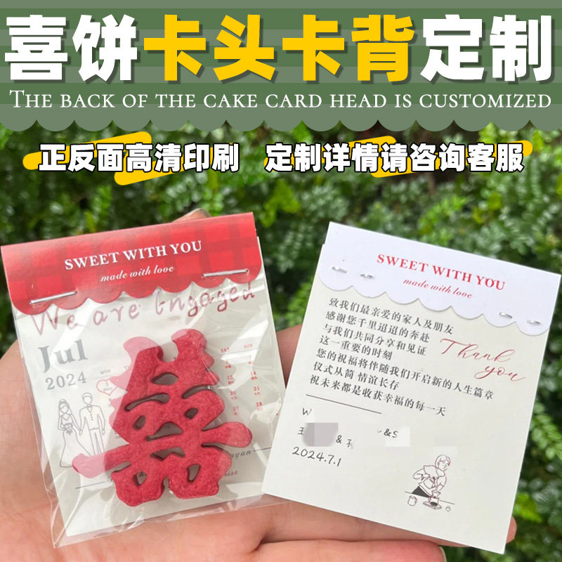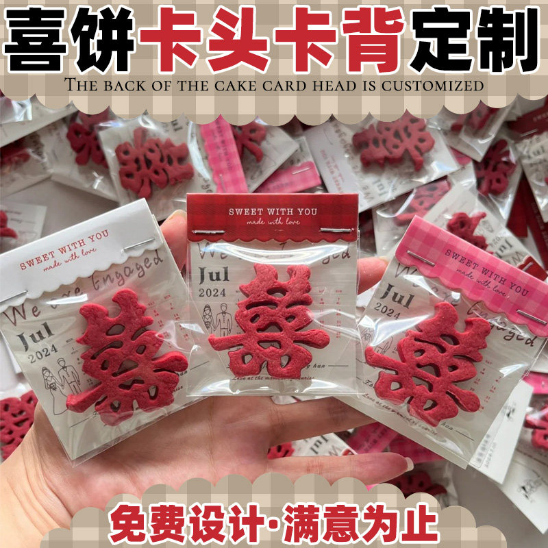 喜饼卡头定制婚礼喜庆打包自封卡背可折叠卡片设计封口袋折页出卡