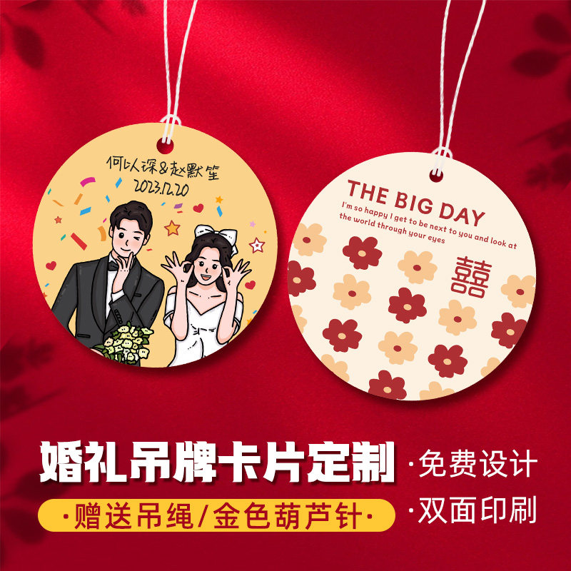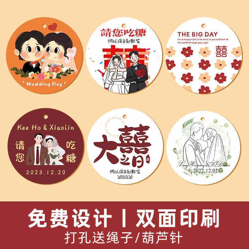 喜糖盒卡片定制订婚伴手礼卡通人物头像logo吊牌设计结婚照名字小贺卡喜饼袋答谢挂牌吊卡打印婚礼感谢卡定做