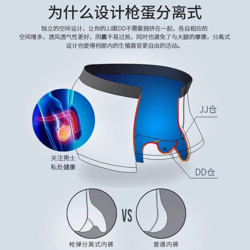 猫人冰丝莫代尔内裤男士防阴囊潮湿精索静脉曲张枪弹式分离平角裤