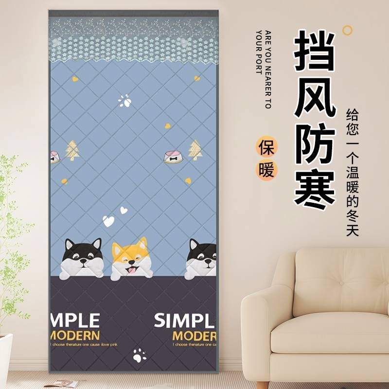 防风门帘挂帘加厚隔断棉门帘冬季防寒免打孔过道家用遮挡帘卧室新