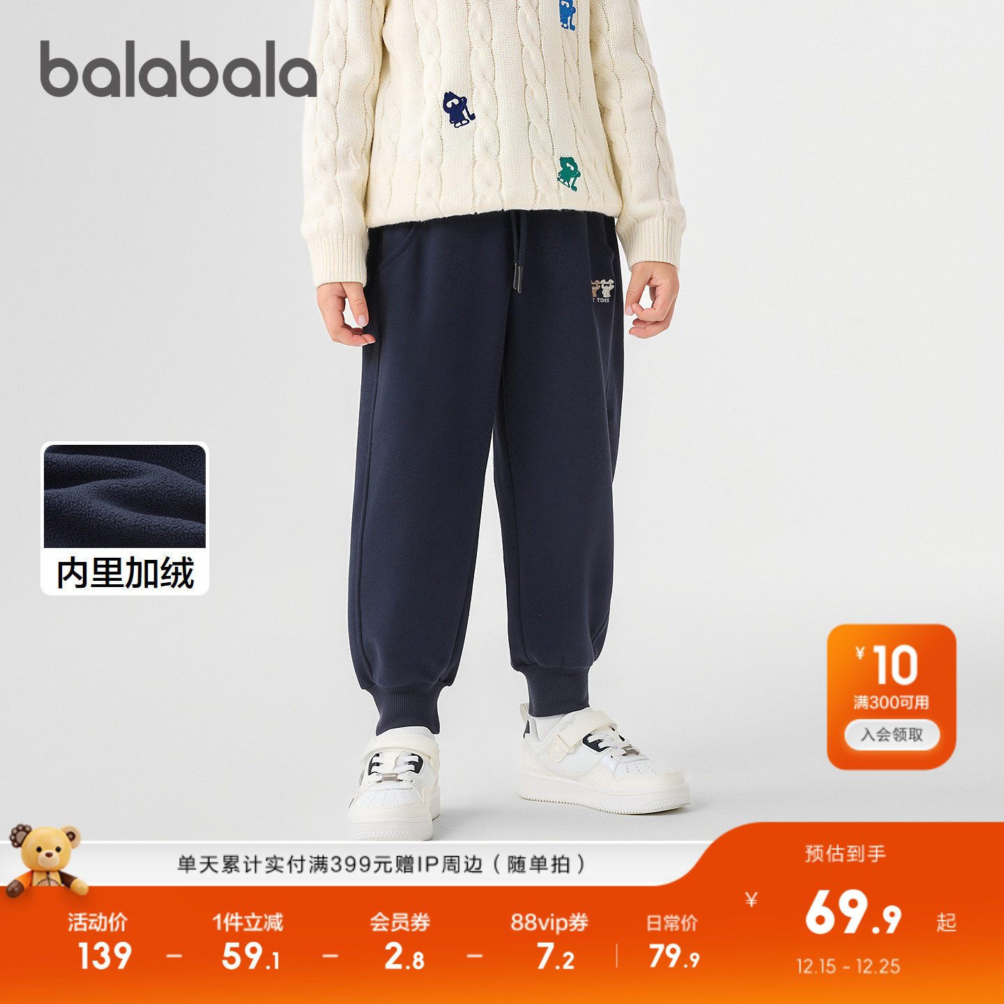 巴拉巴拉童装儿童长裤加绒保暖束脚裤男童休闲裤冬季裤子厚款百搭