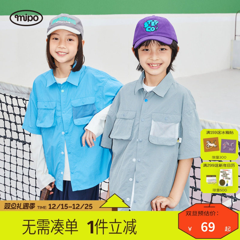 【亲子装】mipo夏季儿童短袖衬衫男童2025新款女童轻量衬衣潮流