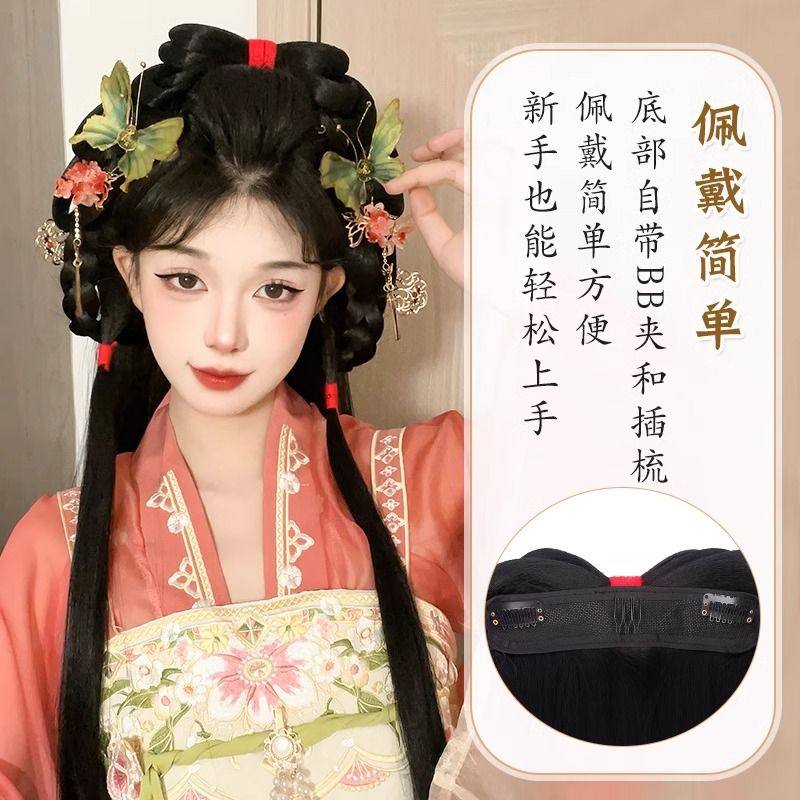 儿童汉服假发一体式古风盘发发髻女童蝴蝶结发包古装头饰垫发造型