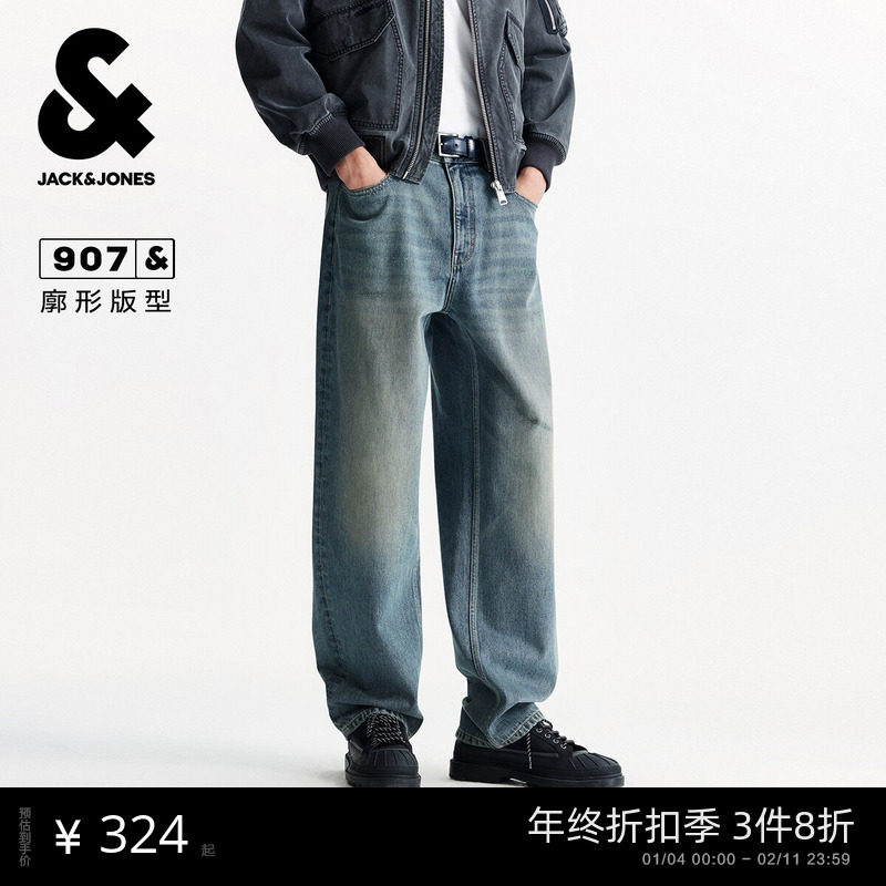 [商场爆款]杰克琼斯男纯棉廓形牛仔裤阔腿裤长裤子男款225332059