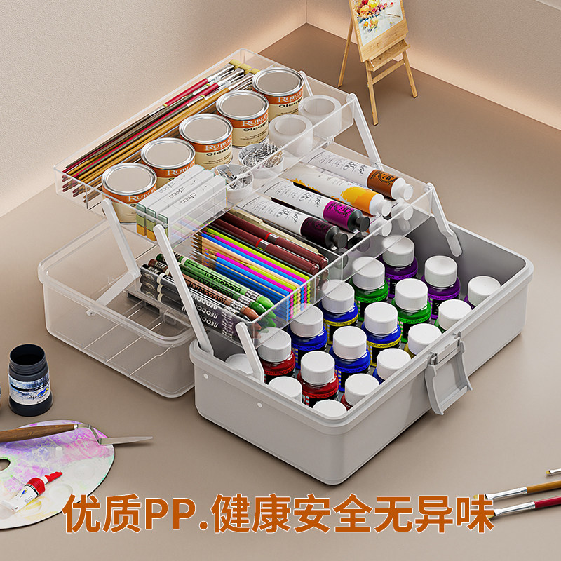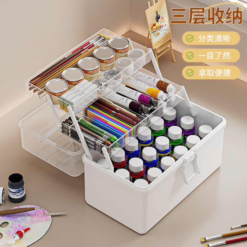 工具箱手提儿童多层折叠油画画笔收纳箱家用塑料收纳盒分层大容量