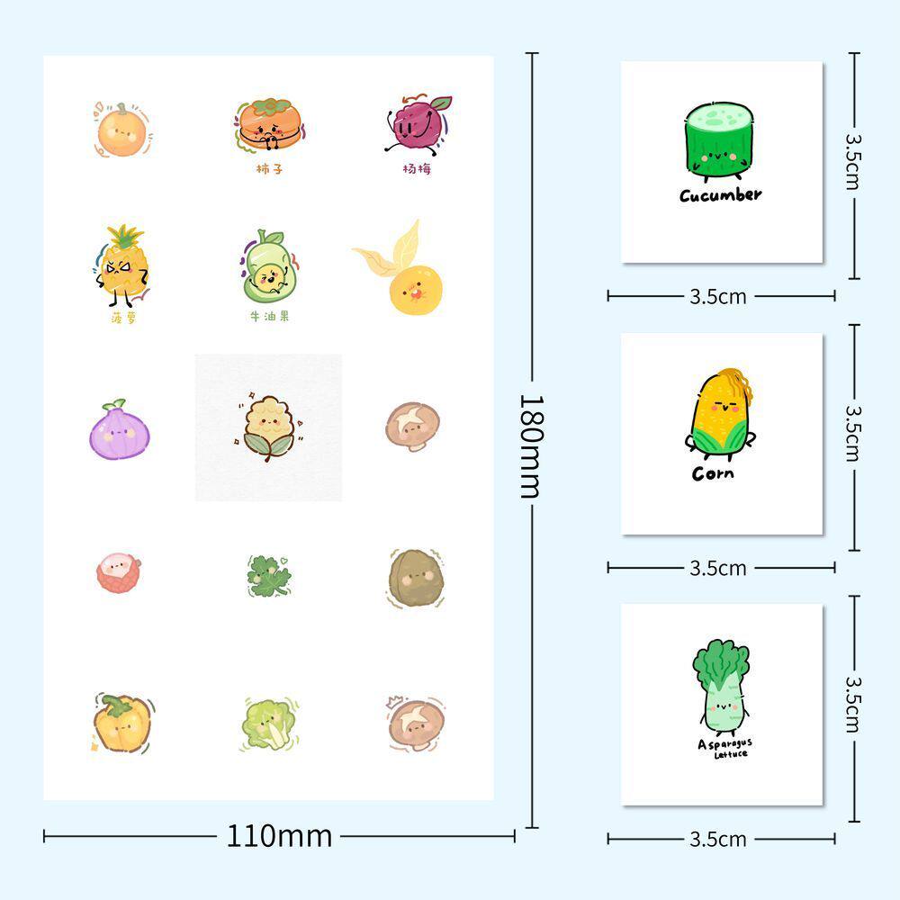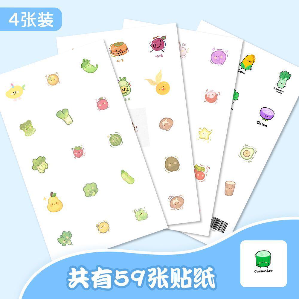 175张果蔬卡通图案系列贴纸可爱6玉米白菜贴画手机手账装饰贴纸