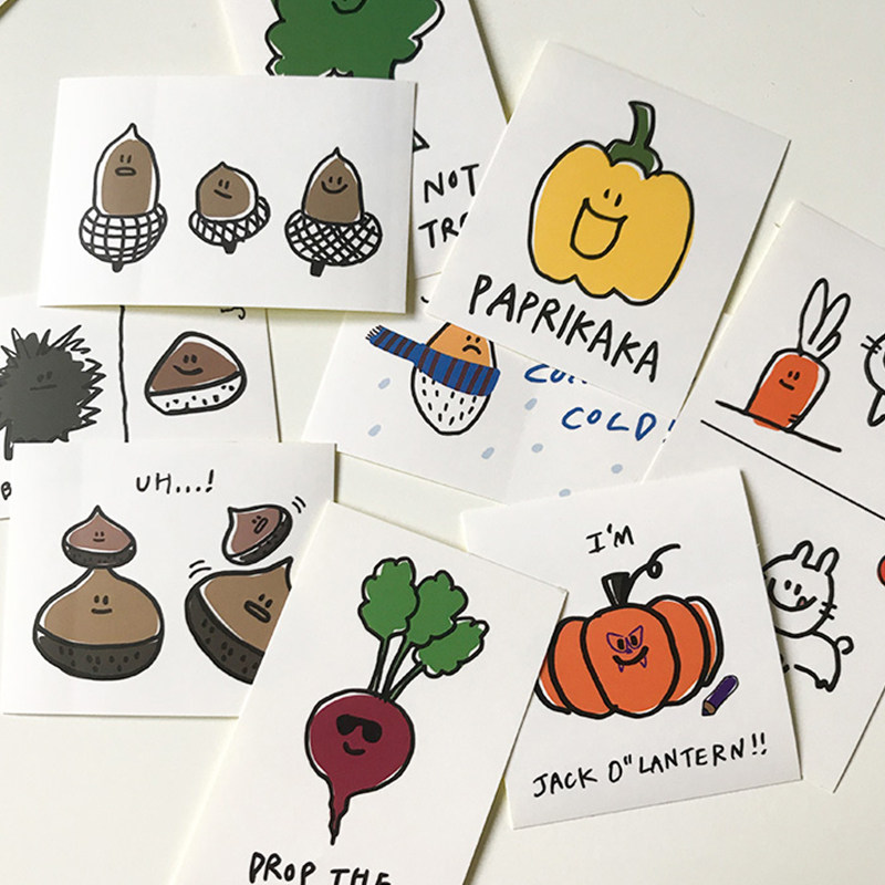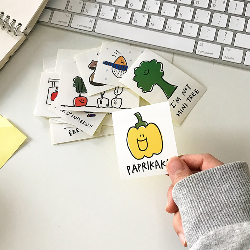 韩国SECONDMORNING可爱蔬果透明贴纸手账素材咕卡装饰贴ins风19张