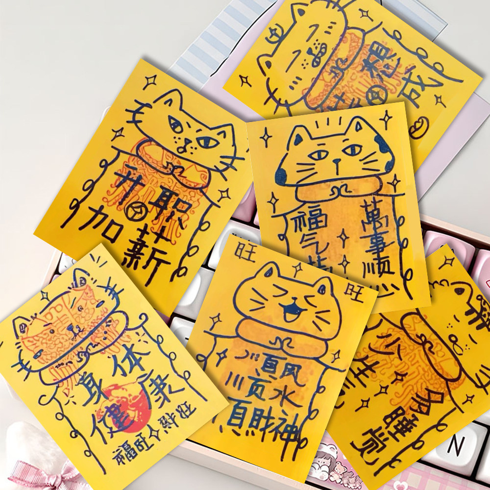 20张招财开运祈福猫咪日式卡通行李箱贴纸防水贴画笔记本滑板贴纸