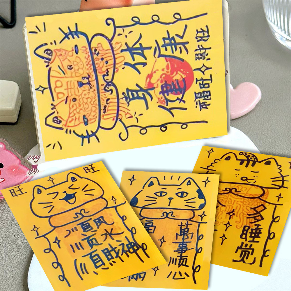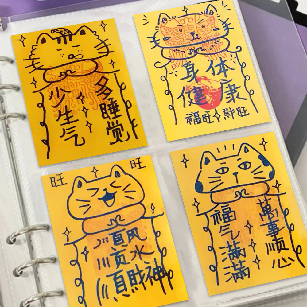 正能量创意猫猫符小卡ins创意猫咪文字高颜值好运符双面收藏小卡