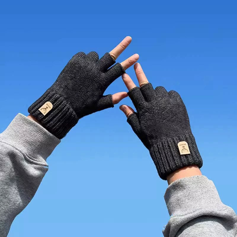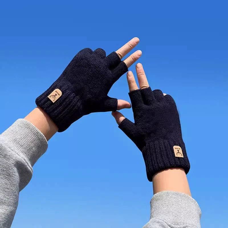 露二指骑行手套保暖冬季触屏韩版毛绒防寒漏指骑车办公写字神器