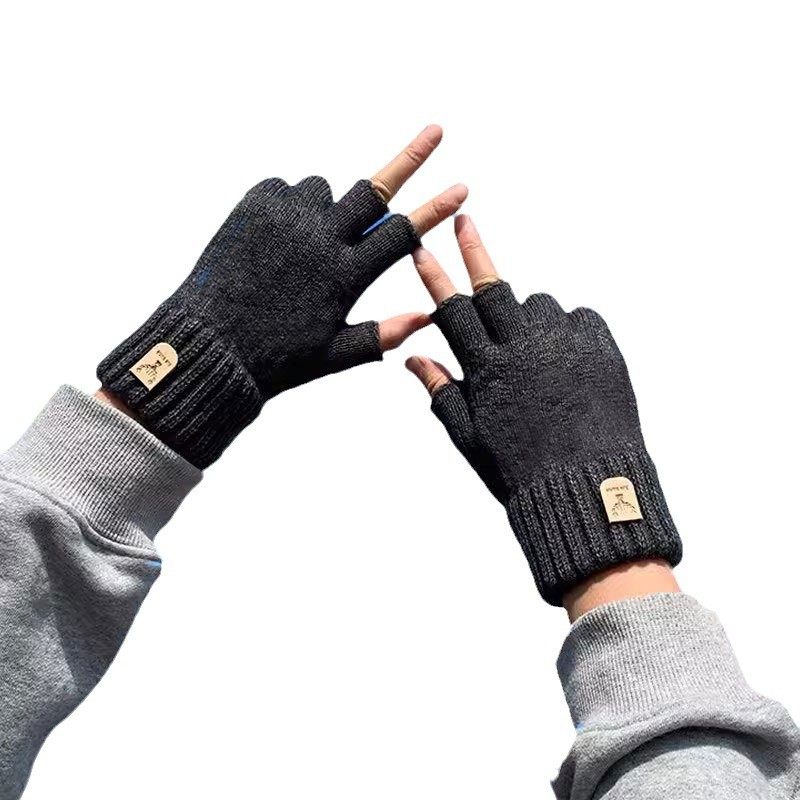 半指手套男露指冬季半截无指骑行开车加厚毛线针织漏指头防寒保暖