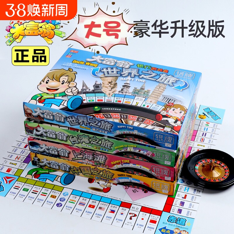 正版大富翁儿童经典豪华升级版成年超大号桌游学生世界之旅游戏棋