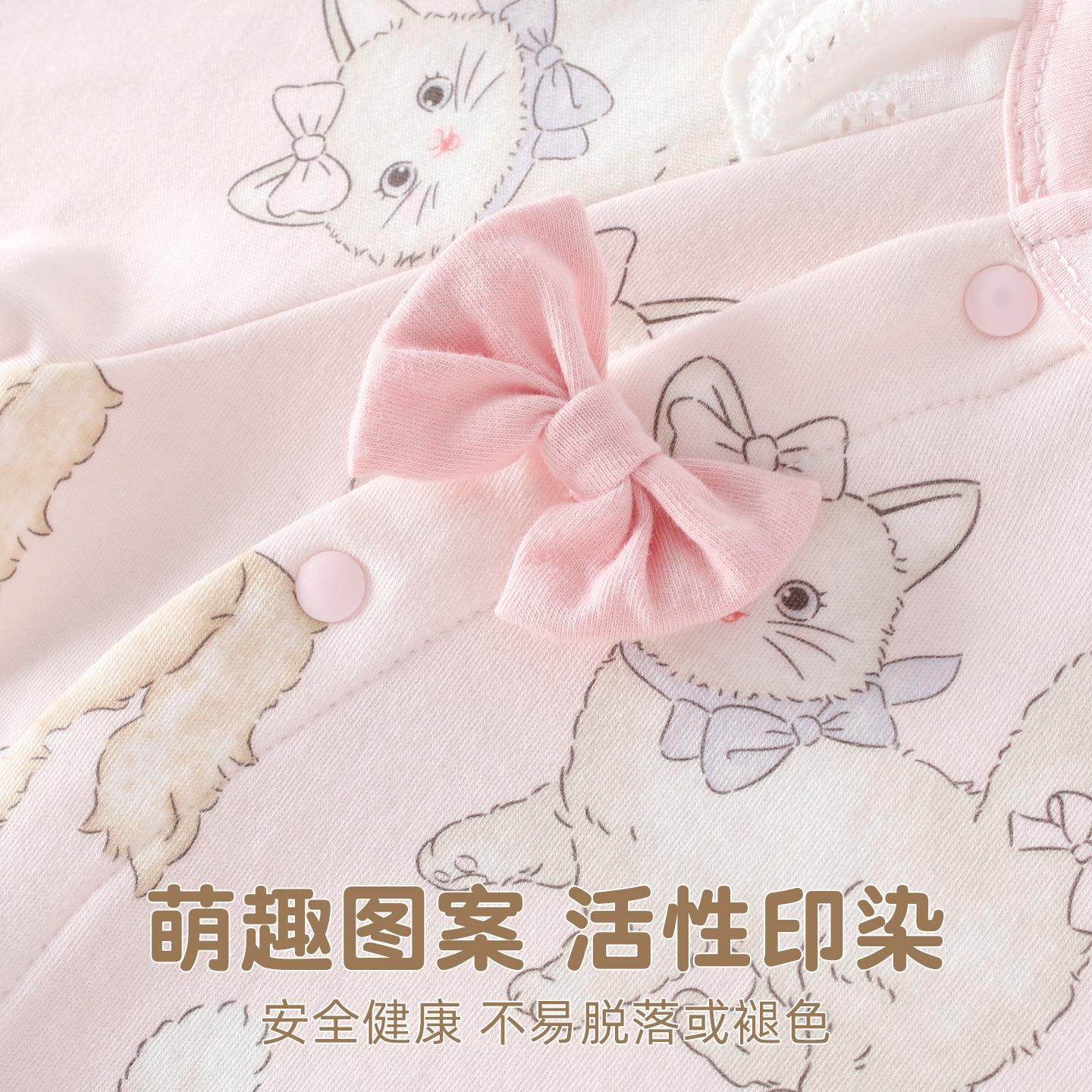 小猪大卫新生儿秋季保暖连体衣男女宝宝卡通印花中开夹棉爬服