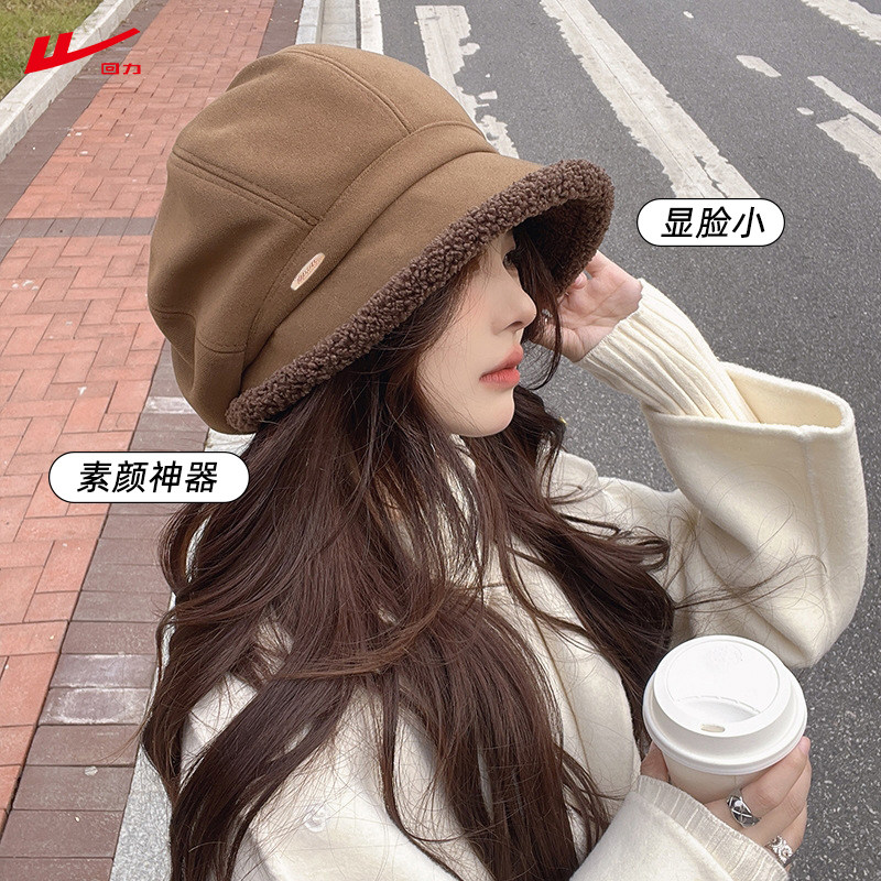 回力鸭舌帽秋冬季女加绒日系防寒护耳渔夫帽休闲羊羔毛八角贝雷帽