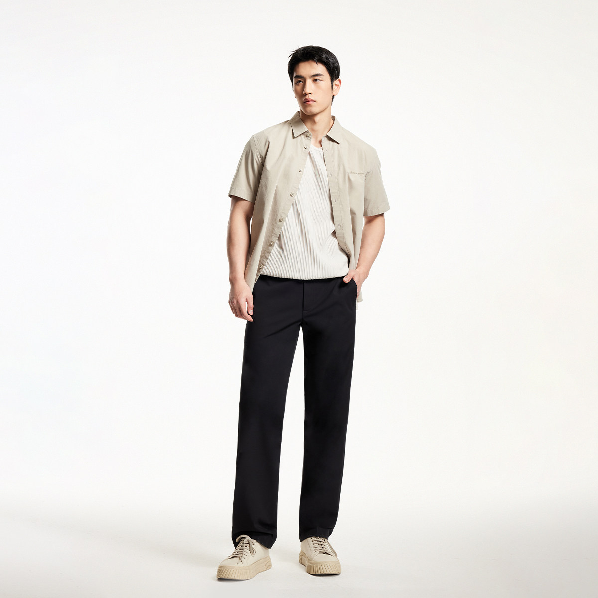 合体版型;暗扣腰头;两侧插袋;凉感面料;