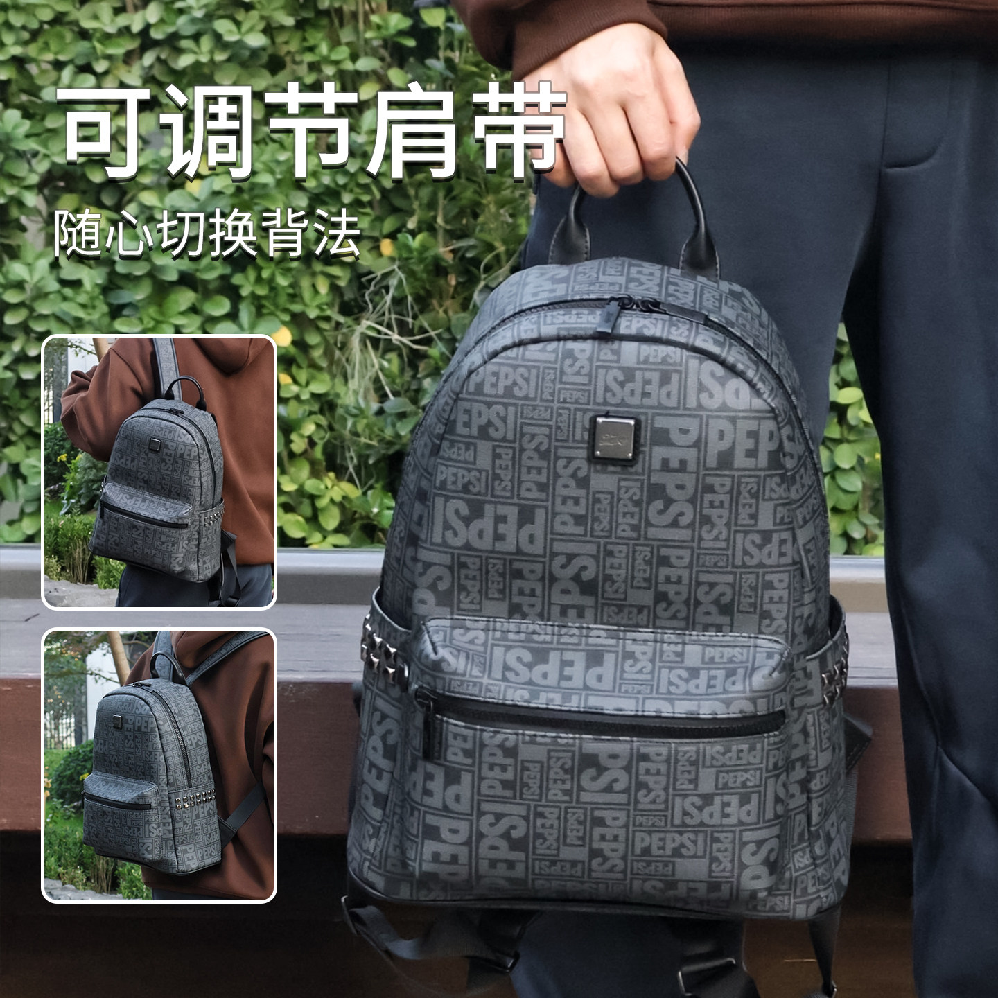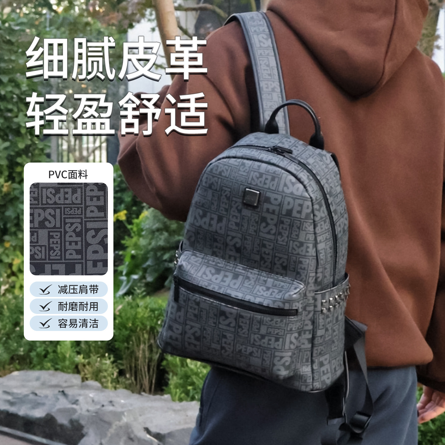 Pepsi/百事大容量休闲时尚双肩包男旅行出游通勤皮质背包女防泼水