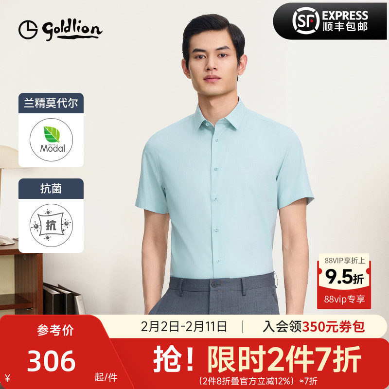 【莫代尔顺滑】金利来夏季新款男士正装白衬衫易打理商务短袖衬衣