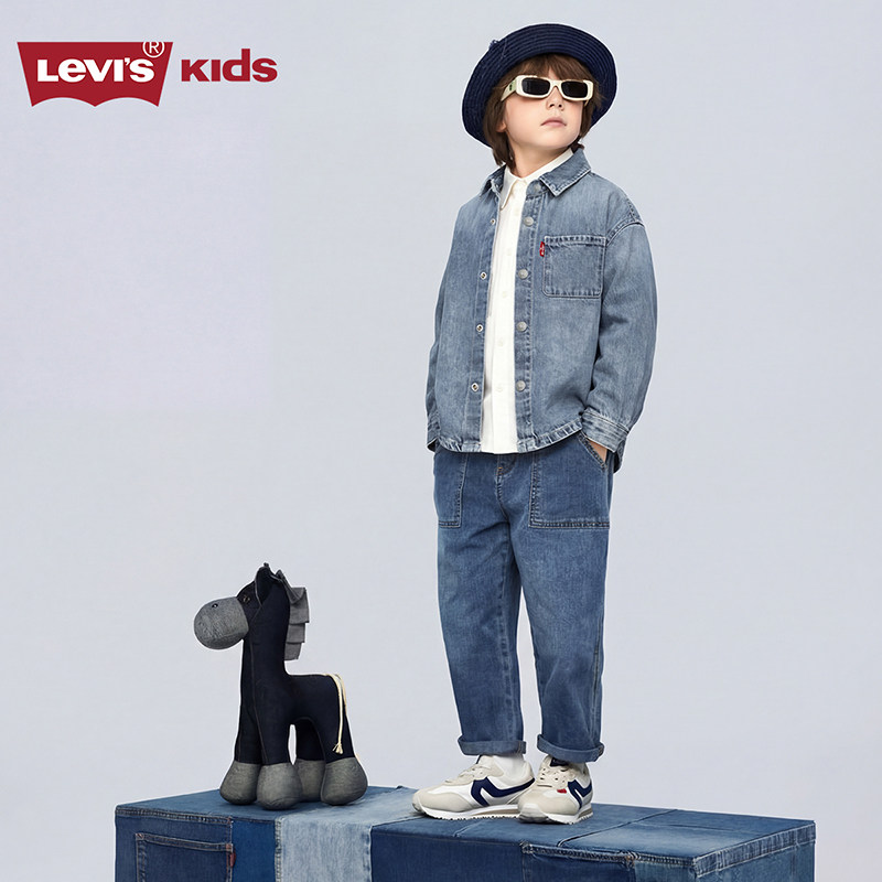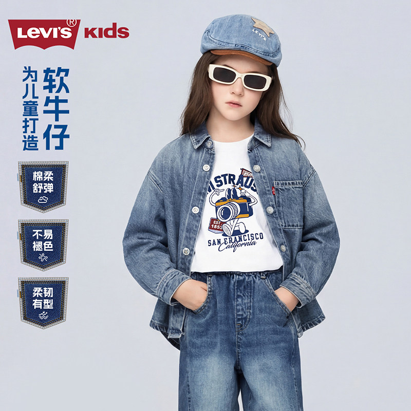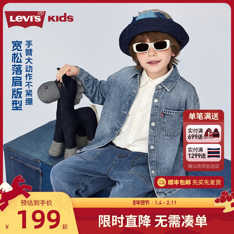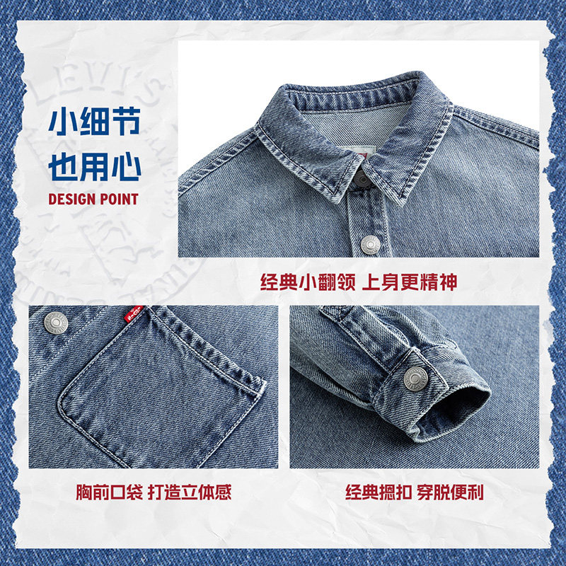 Levis李维斯儿童牛仔衬衫2026新款童装经典水洗男童女童外套长袖