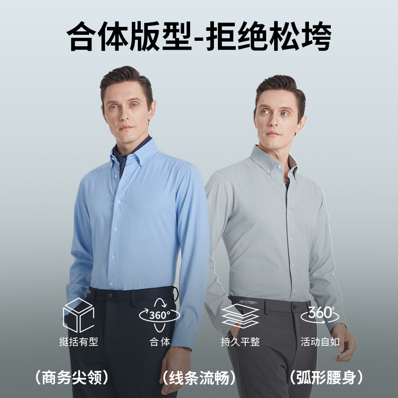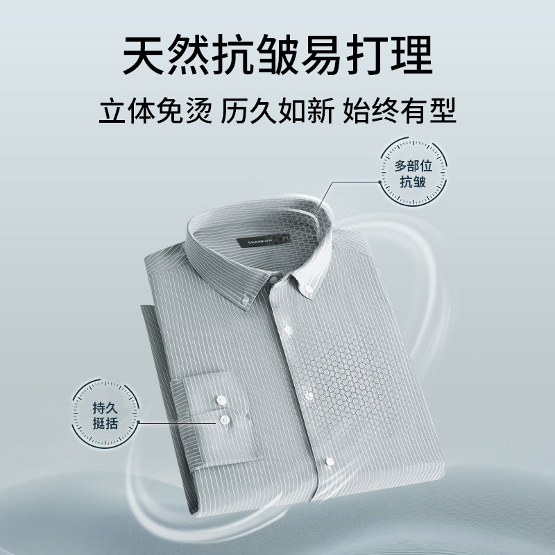 SHANSHAN杉杉品牌男士长袖衬衫纯色2025秋季新款休闲抗皱免烫衬衣