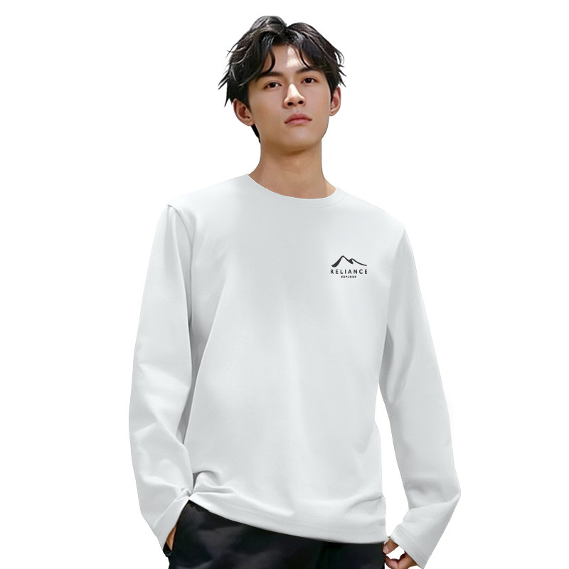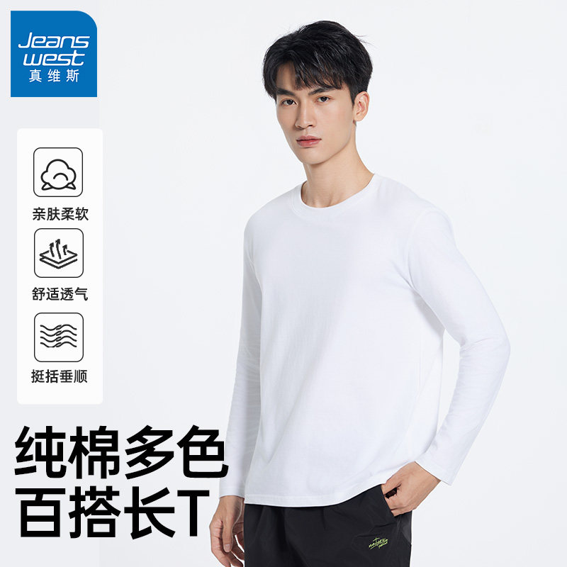 GV真维斯白色长袖t恤男款2026新款春秋季纯棉上衣男士重磅打底衫A