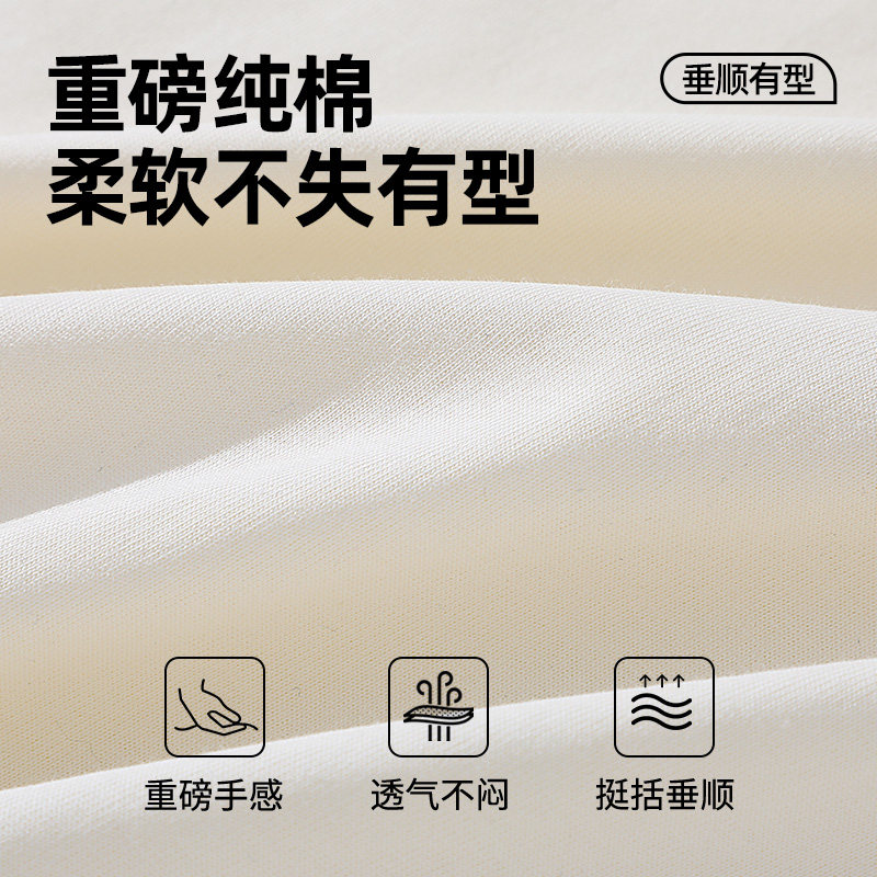 小尼力bf美式重磅纯棉短袖t恤男女基础款纯色oversize打底白色TEE