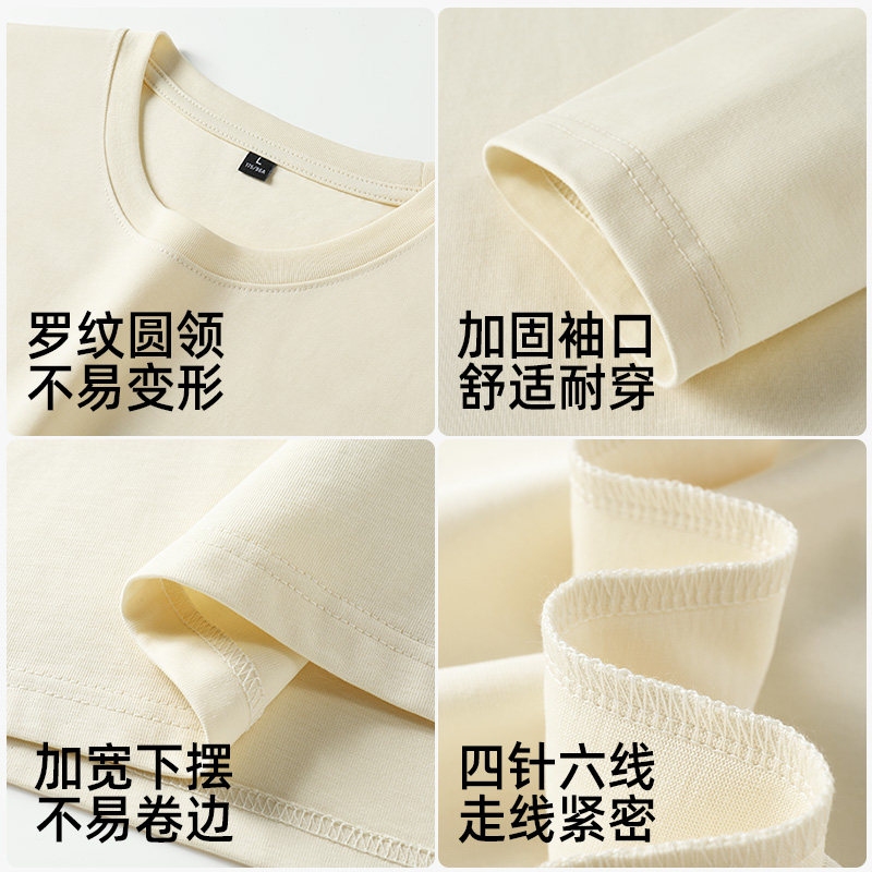 新疆棉300g重磅纯棉短袖t恤男女纯色圆领宽松厚实不透打底衫体恤