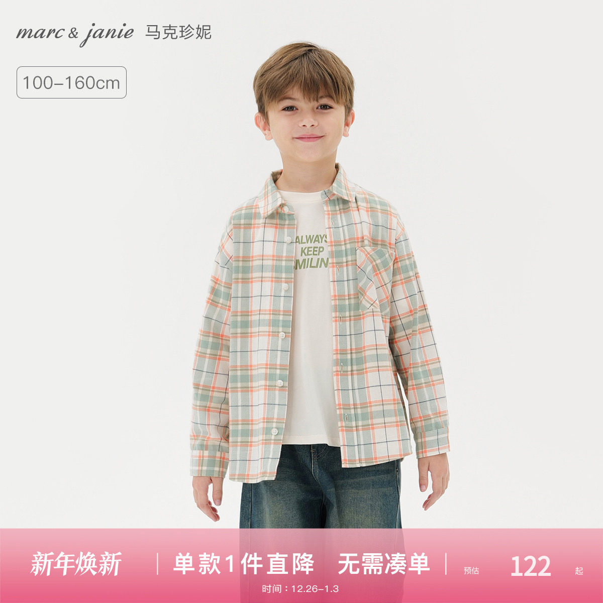马克珍妮男童复古格纹百搭新年红衬衫儿童纯棉衬衣秋装新品551569